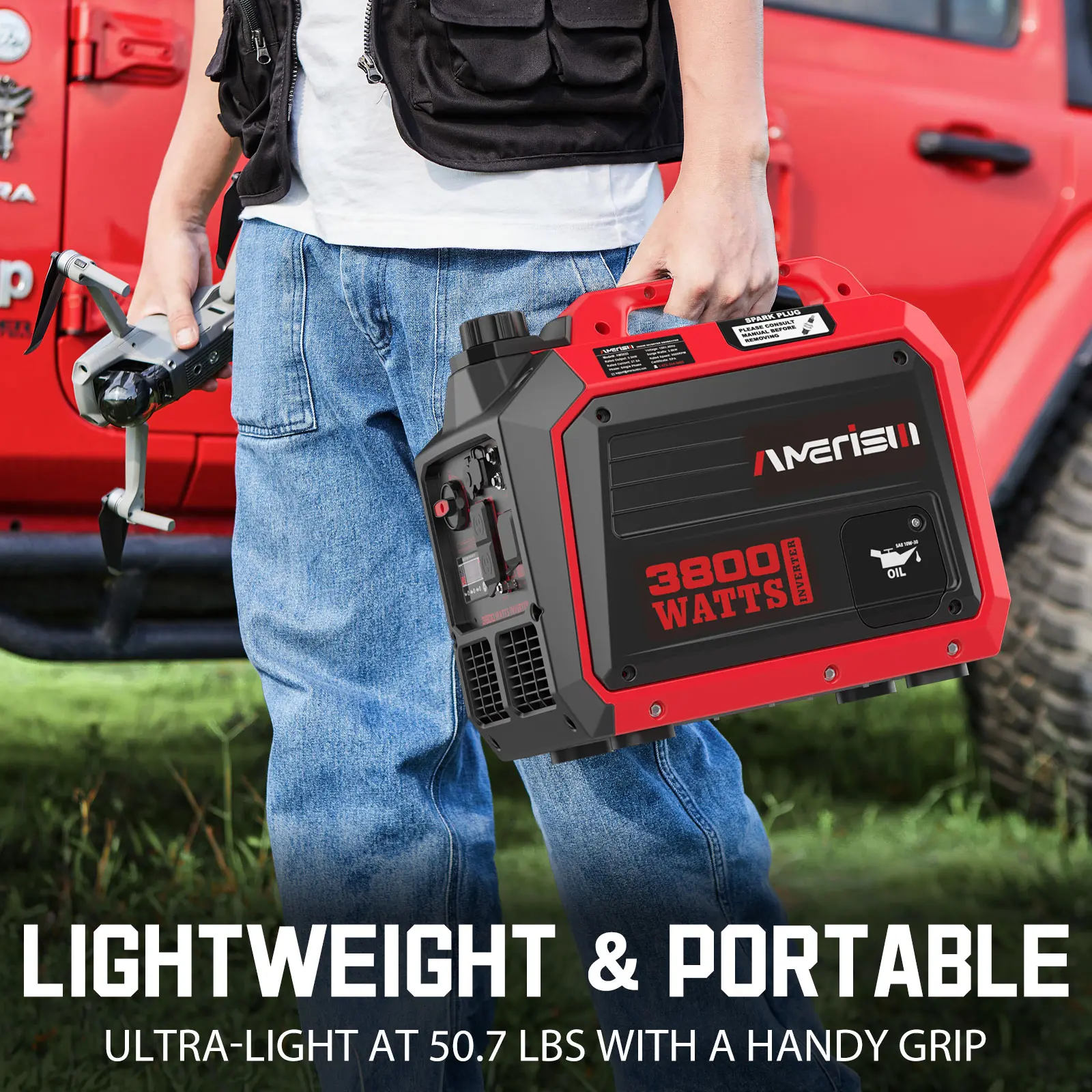 ·PORTABLE & LIGHTWEIGHT: Weighing only 50.7lbs, the gas-powered generator for camping features a convenient carrying handle, making it easy to transport for camping, tailgating, and other outdoor activities