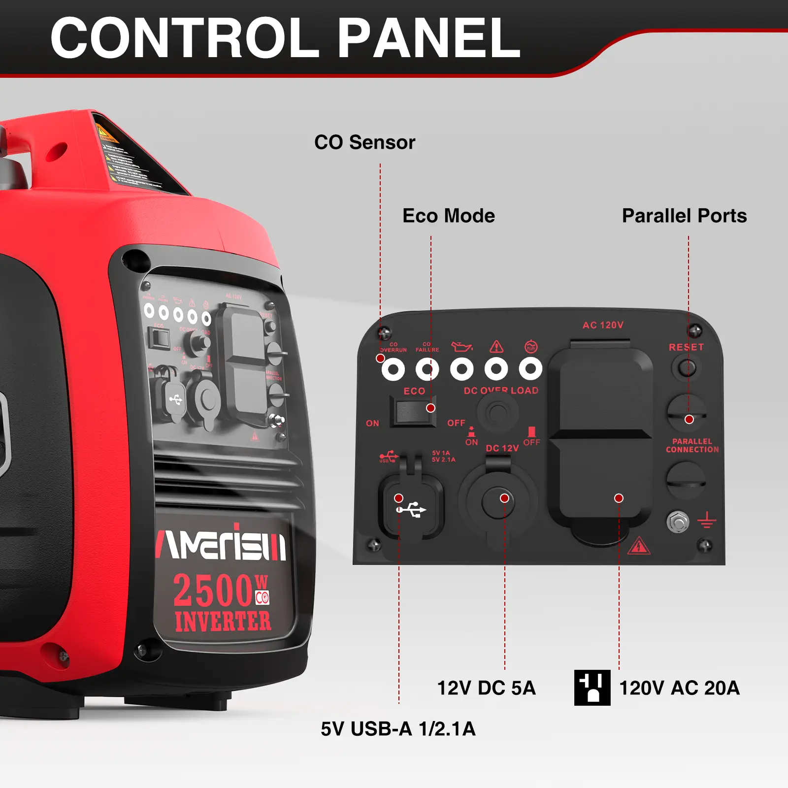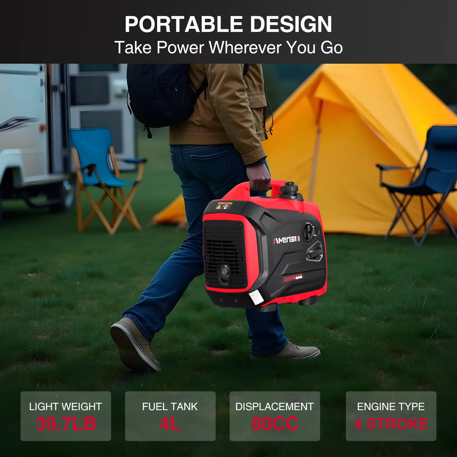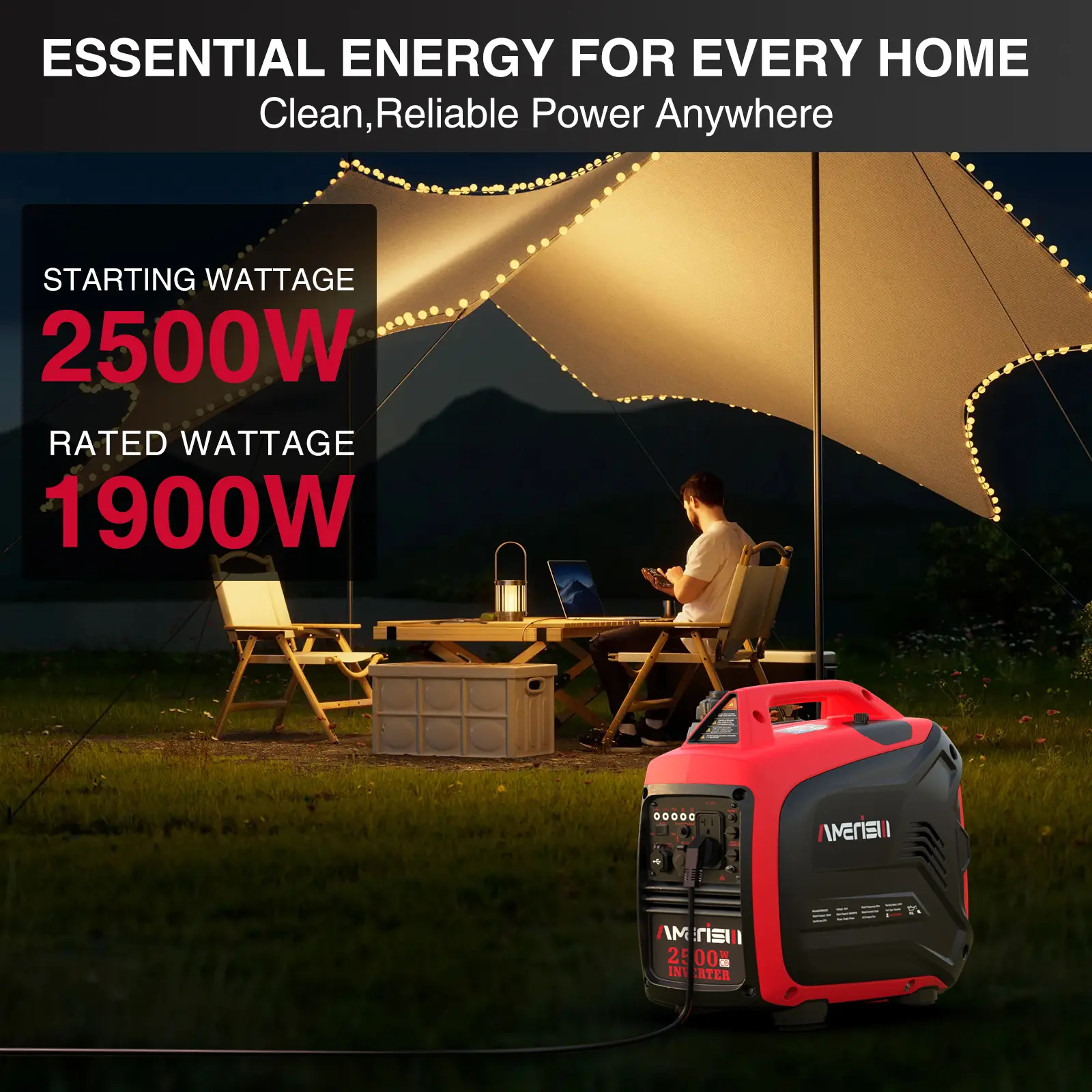 Equipped with an 80cc 4-stroke, OHV engine, this generator delivers 2500W starting and 1900W running power. It generates clean electricity with less than 3% THD. Perfect for home use, camping, and outdoor activities, this generator ensures reliability and efficiency.