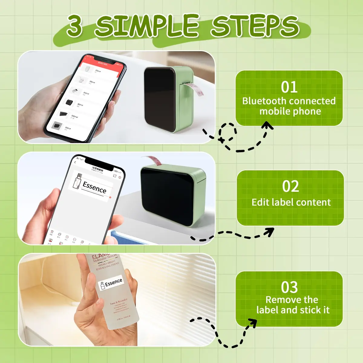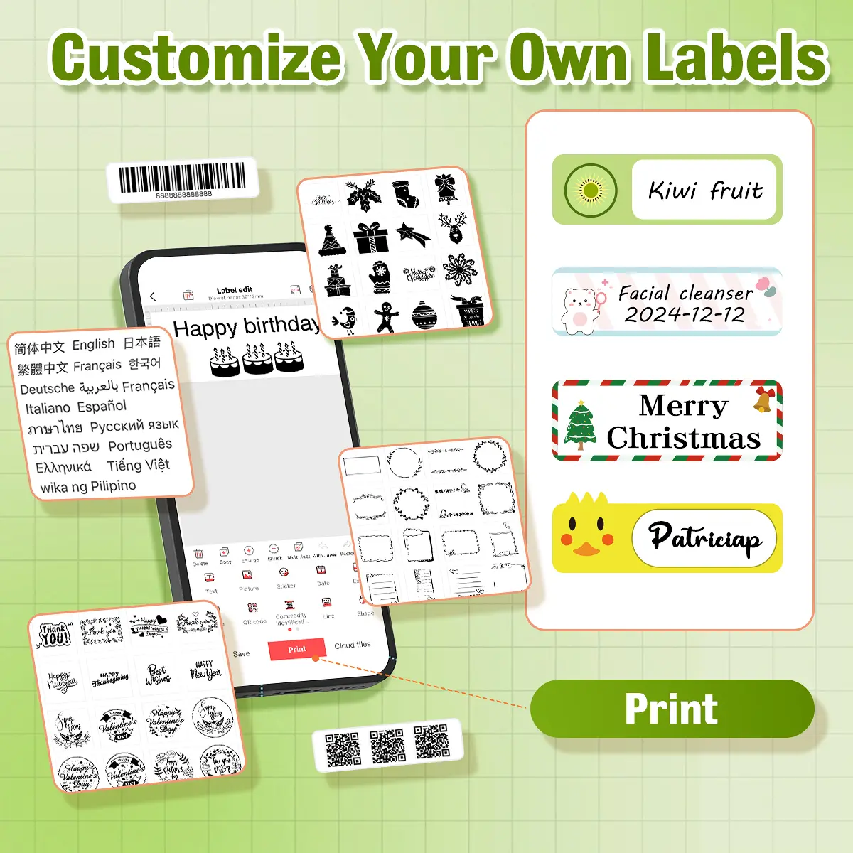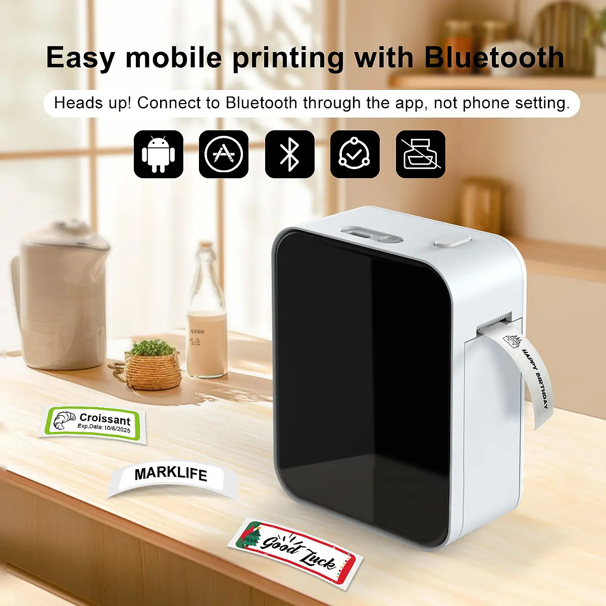 Portable Label Printer with Waterproof Self-Adhesive Labels (12mm X 40mm), Bluetooth-compatible Compatible with iOS & Android