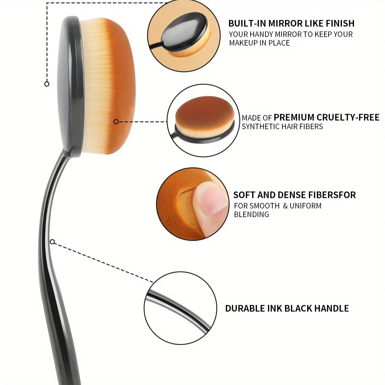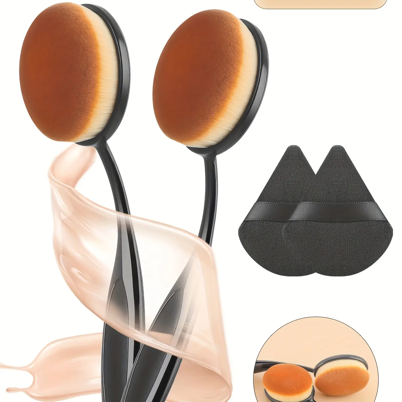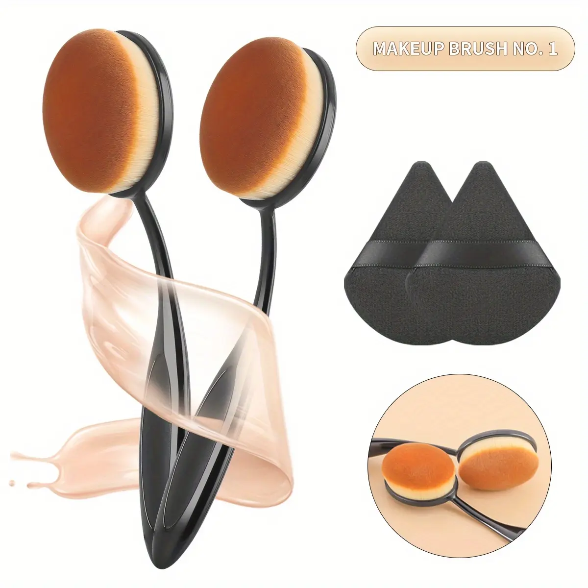 2pcs Black Oval Toothbrush Foundation Brushes + 2pcs Makeup Sponges – Portable Beauty Duo Brush Liquid & Cream Blending Set for Travel, Beginners & Daily Makeup Synthetic Makeup Brushes