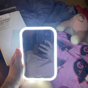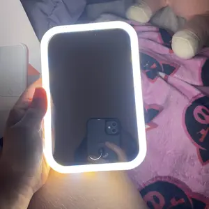 ok i thought it would be too small, but actually it’s pretty good and i can see my entire face very well. i think considering that it’s pink the light also emits the same so it’s hard to tell if something is off, but it’s pretty illuminating so i like it.
