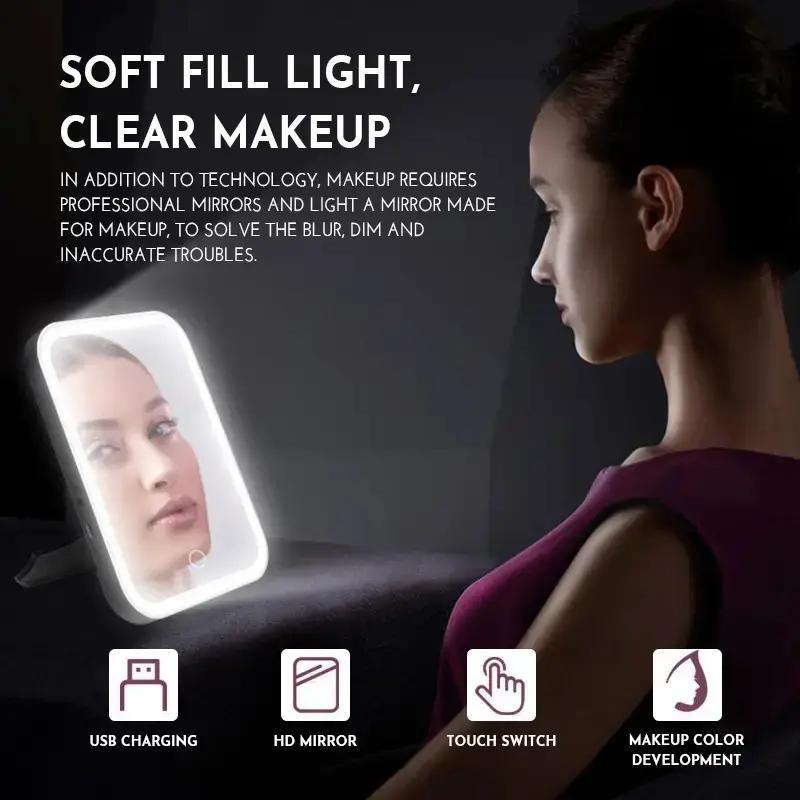 Perfect fit for a makeup bag or on the go! The light is bright even has a lower setting