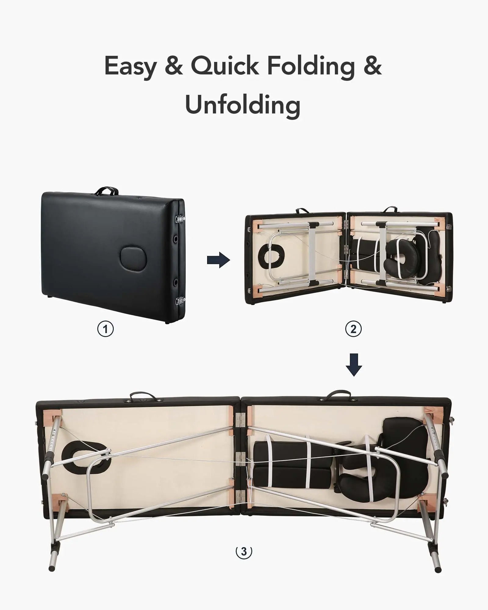 ·Portable Massage Table & Tool-free Assembly: With foldable design and security buckle, the massage table can be unfolded easily in the middle within 30 seconds, no tools need. The portable massage table can be folded in half to a case with handle when not in use, convenient for you to take to office, home or any place you want. After folded, the massage bed will become a carrying case. It can save space when not in use at home.