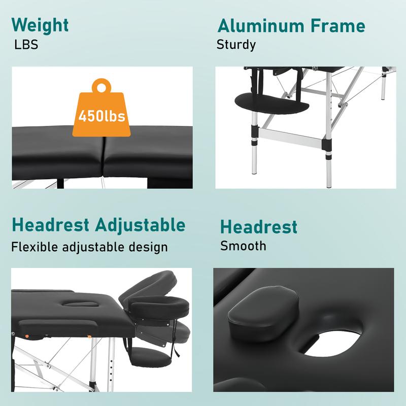 ·[Comfortable and exceptionally strong]: The massage table uses high-density sponge to give you a soft and comfortable experience. The massage table is made of reinforced aluminum frame and supporting cable, and the reinforced hardwood corner block has super strength, which can bear 450 pounds on the spa table.