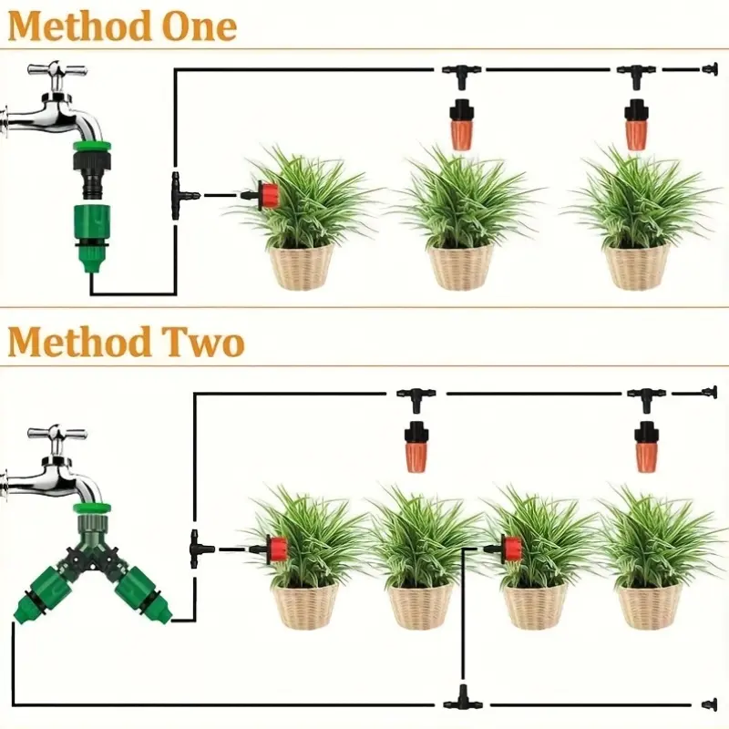 Portable Micro Irrigation System with Automatic Durable PVC Garden Watering Kit - Dual Spray Sprinklers, Adjustable Flow Valve and Spray Nozzle, No Electricity Required for Outdoor Plant Care and Farmland Irrigation