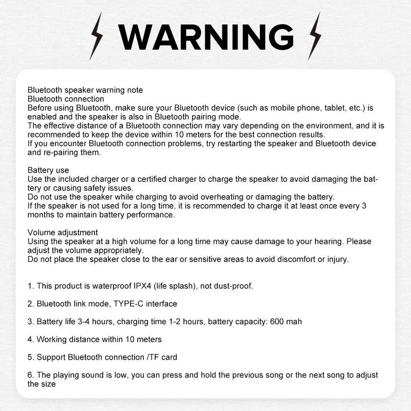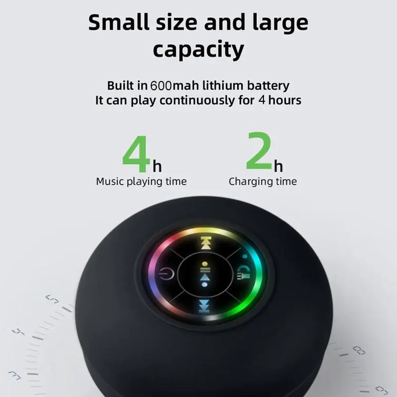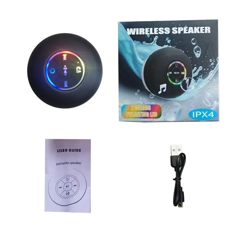 【Waterproof Rating】: This speaker boasts an IPX4 waterproof rating, making it perfect for beach days or shower use without worry. 【LED Lighting】: Equipped with an integrated LED light, this speaker adds a fun visual element to your music experience. 【Compact Size】: The portable mini design ensures easy transport, allowing you to enjoy music wherever you go, whether at home or outdoors. 【Wireless Connectivity】: Featuring wireless connectivity, this speaker easily pairs with mobile devices for hassle-free music streaming. 【Stereo Sound Output】: Enjoy rich, stereo sound quality with dual speaker configuration, enhancing your audio experience during use.