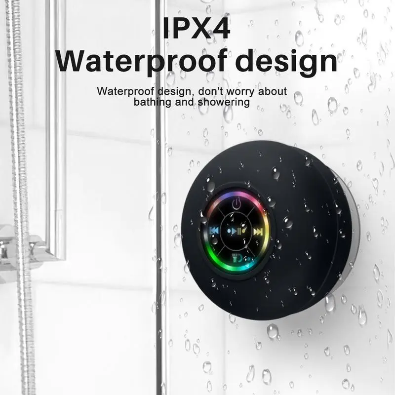 Portable Mini Bluetooth-compatible Shower Speaker, Waterproof Speaker with LED Light, Rechargeable Wireless Stereo Speaker for Beach, Shower & Home, Audio