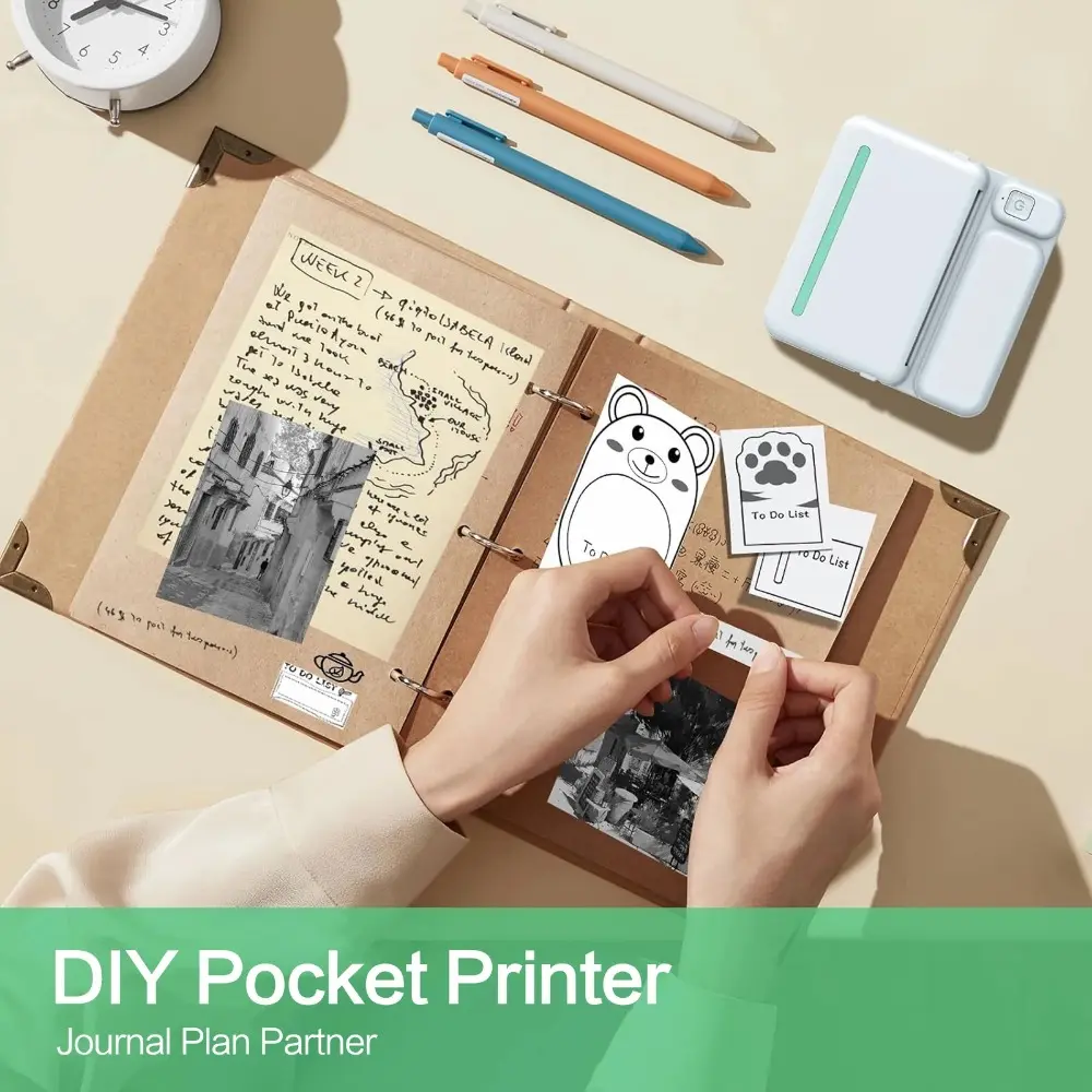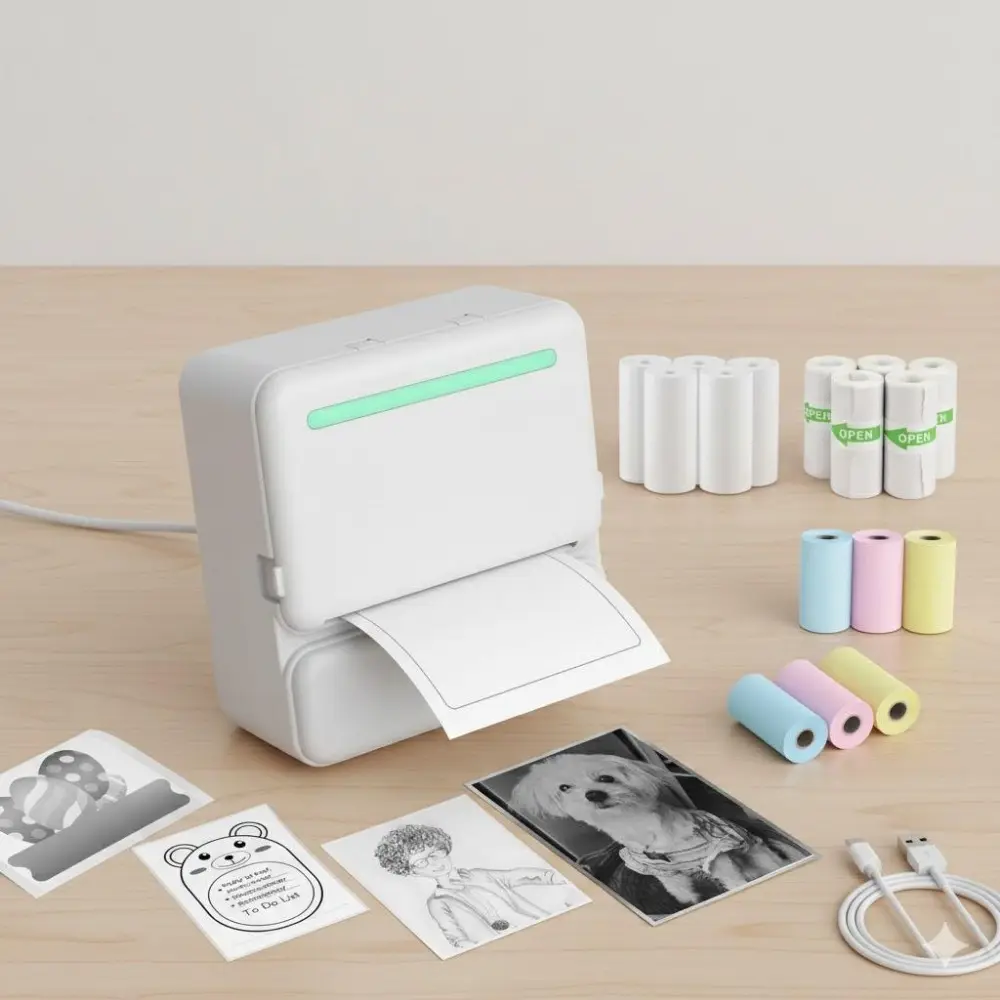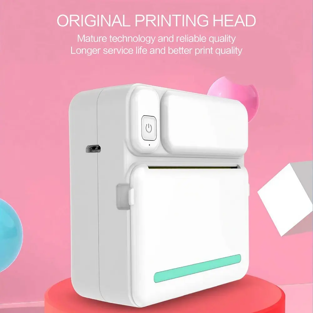 Portable Mini Bluetooth Thermal Label Printer for iOS Android, Sticker Photo Machine with 14 Rolls Paper, Wireless Pocket Printer for Home Office Student Study, No Ink Instant Stick Clear Image