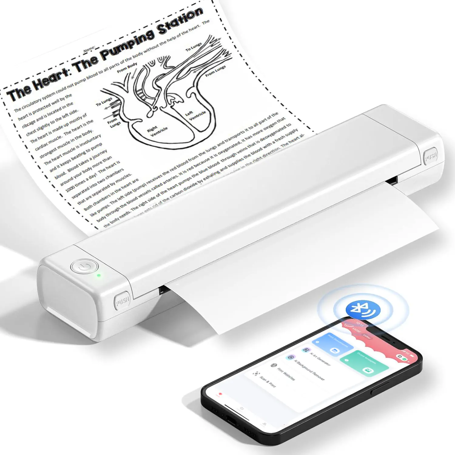 Get the "Phomemo" app from Google Play or Apple Store to print via Bluetooth on your M08F Portable Thermal Printer for iOS and Android. It supports printing from local and cloud documents, making it a reliable choice for emergencies, business contracts, office documents, travel needs, boarding passes, and more.