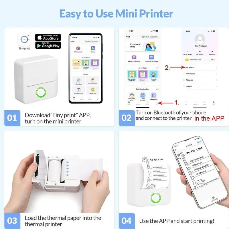 Universal Wireless Printing: Seamless Bluetooth connectivity pairs instantly with your iPhone or Android device via a dedicated app for effortless printing.