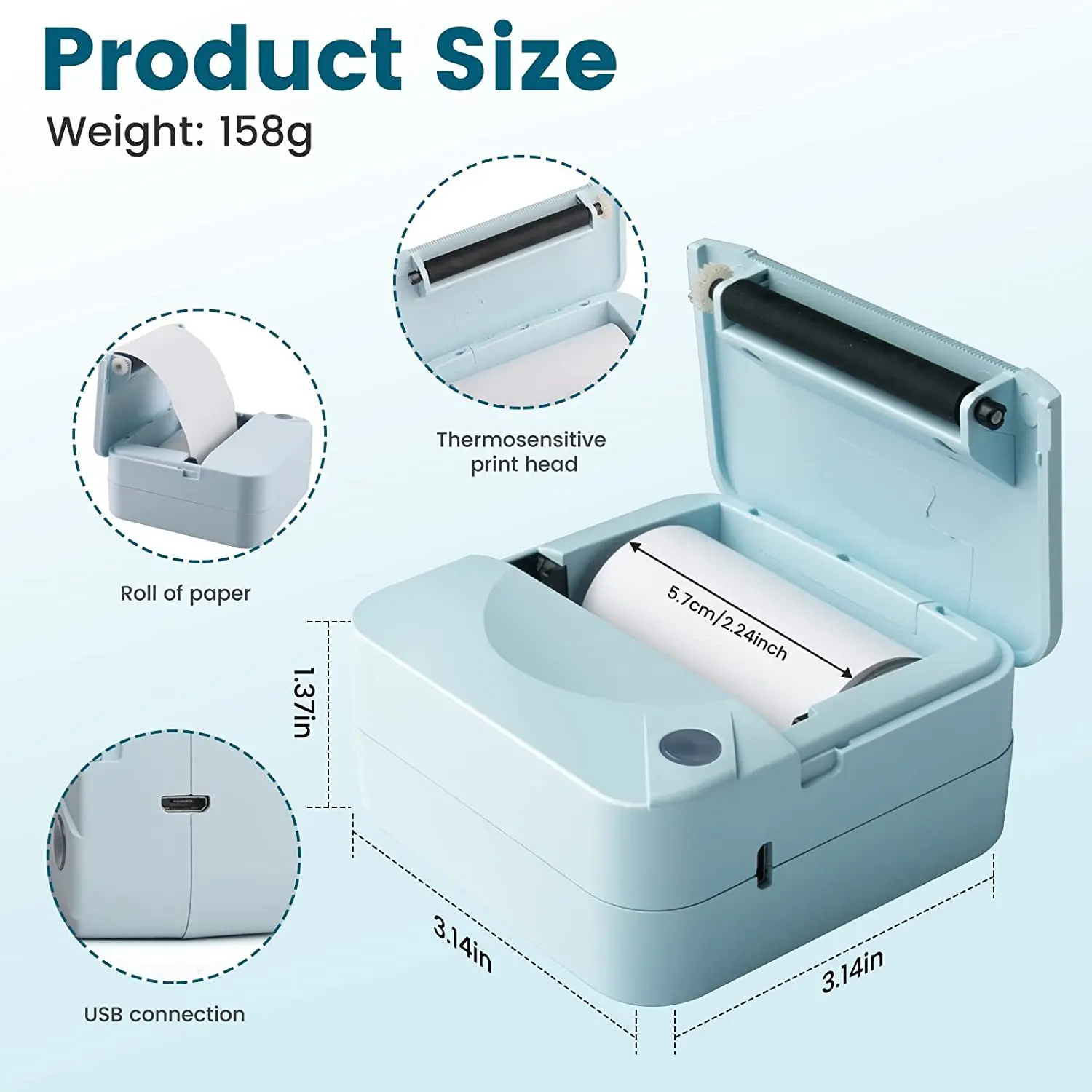 ·Compact and Convenient: This portable mini printer is perfect for home, office, and school use. It comes with a set of USB rechargeable wireless thermal printer and print paper. 📄