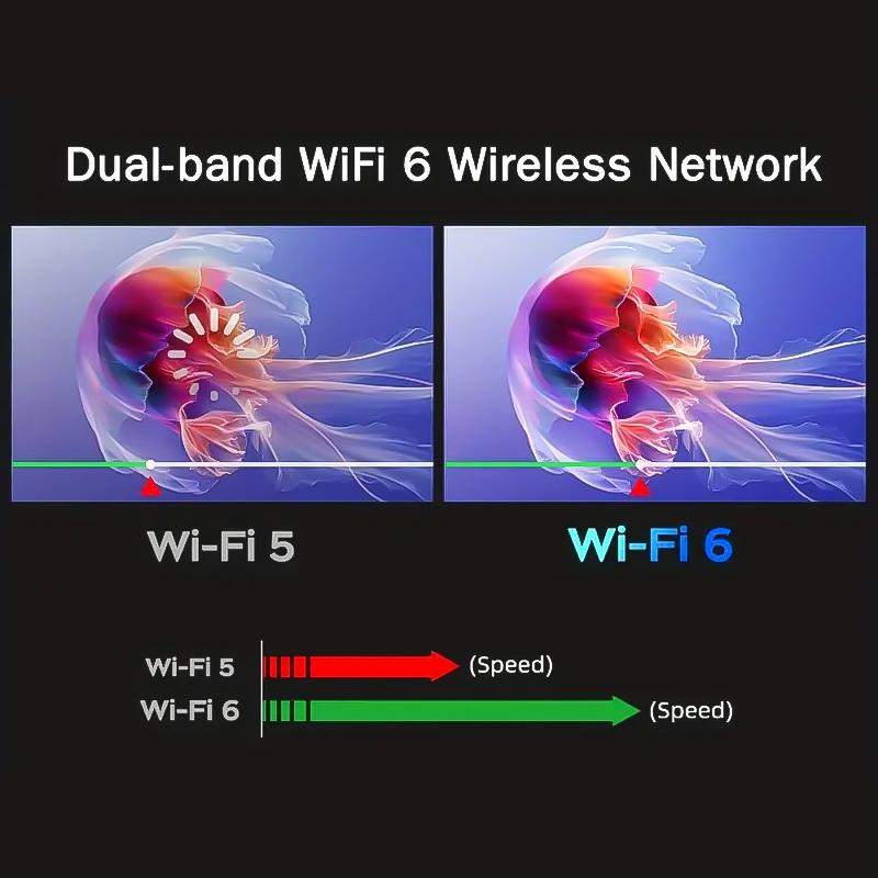[2.4G/5G Dual-Band WiFi and Bluetooth 5.2] 5G and 2.4G high-speed WiFi options, along with reliable wired connectivity, provide dual security for seamless video playback. Bluetooth 5.2 offers more stable connectivity for Bluetooth headphones, speakers, and other devices.