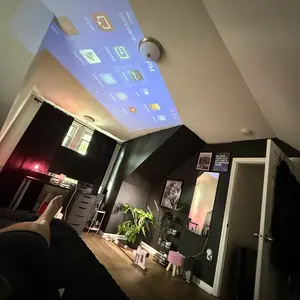 [270° Built-in Stand, Easy to Hold] Weighing only 575g, this compact yet elegant projector instantly projects movies onto ceilings farther away. Whether you're indoors or enjoying movie night outdoors, you can take it with you and enjoy high-quality visuals.