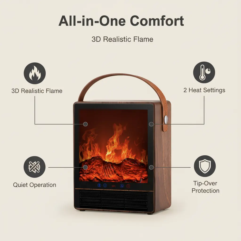 ·【Instant Warmth Anywhere】A portable electric fireplace offers immediate warmth exactly where you need it. Whether it’s a chilly living room, bedroom, or home office, you can move it around effortlessly to heat specific areas without wasting energy on the whole house. This flexibility makes it a must-have for every home, ensuring cozy comfort wherever you are.