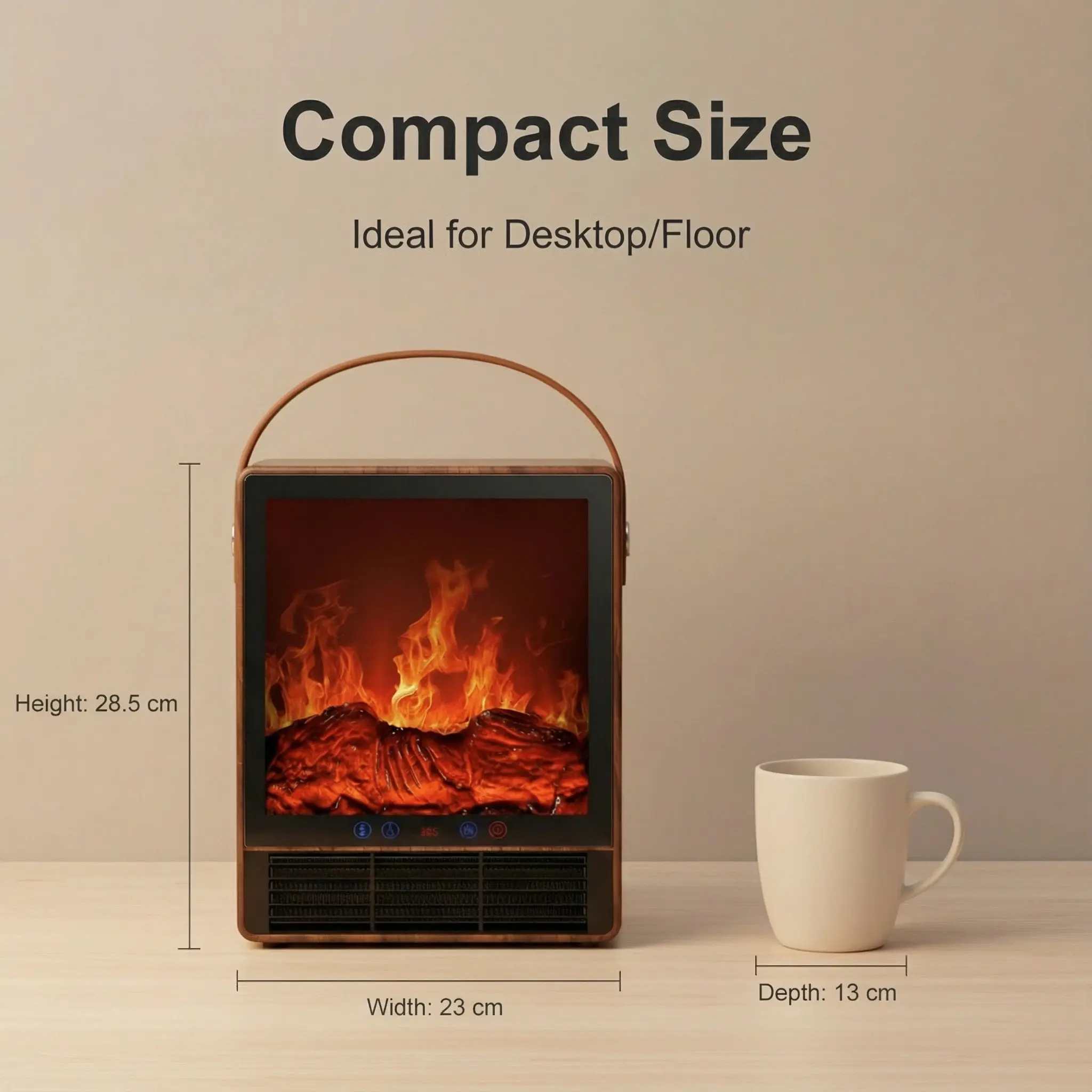 ·【Compact Size, Big Heat】Our portable electric fireplace packs powerful heating in a compact design. With three heat modes, you can choose between 750W for low heat, 1500W for high heat, or a fan-only mode for cool air circulation. This flexibility ensures optimal comfort in any season, while the small size allows it to fit seamlessly into any space. Perfect for year-round use, it’s a convenient and efficient heating solution for your home or office.
