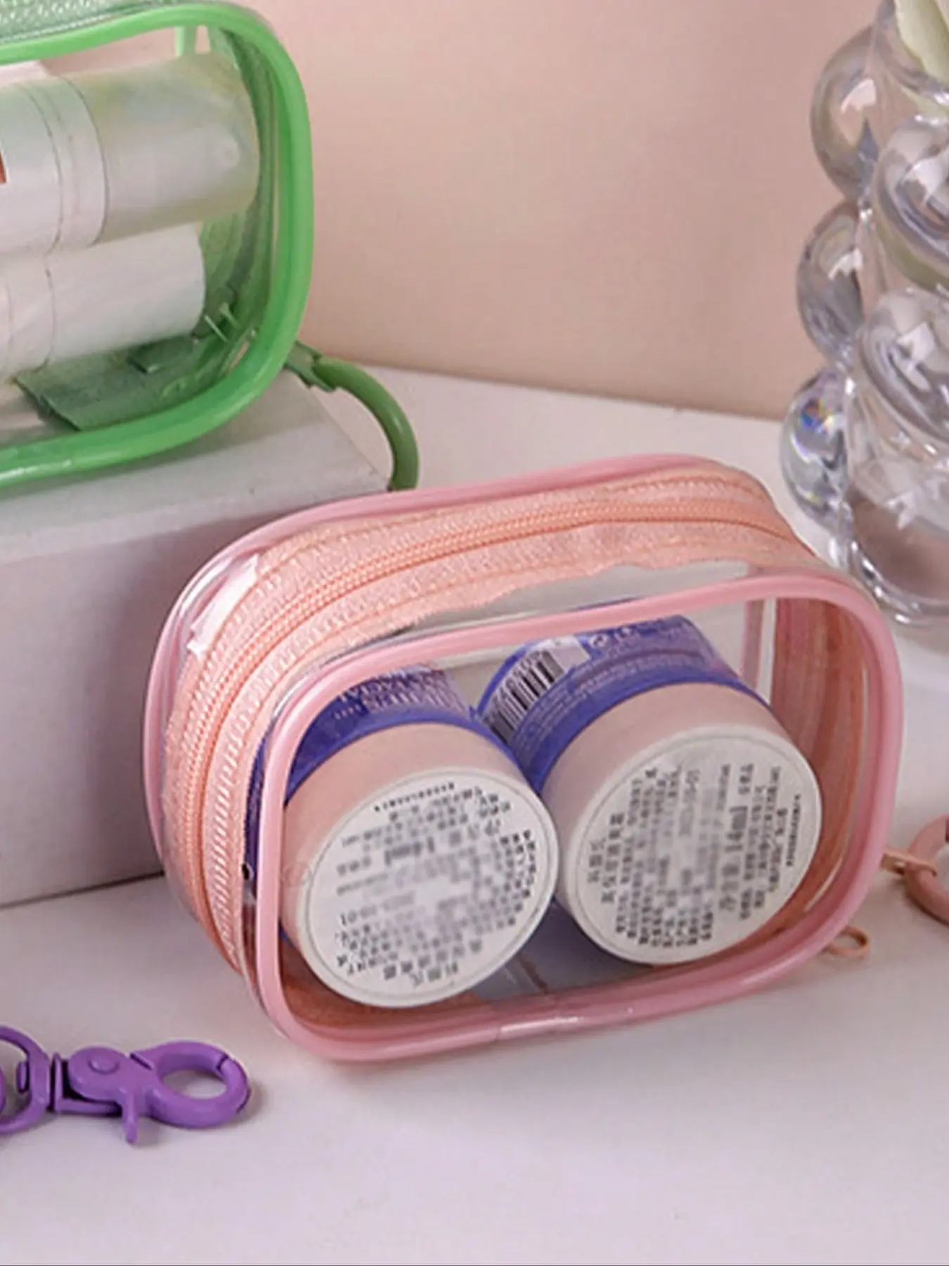Portable mini transparent zippered storage bag, Zipper pouches, compact multi-functional storage bag, earphone charger storage box with key ring, transparent travel accessory, suitable for storing small items, data cable storage bag Organizer