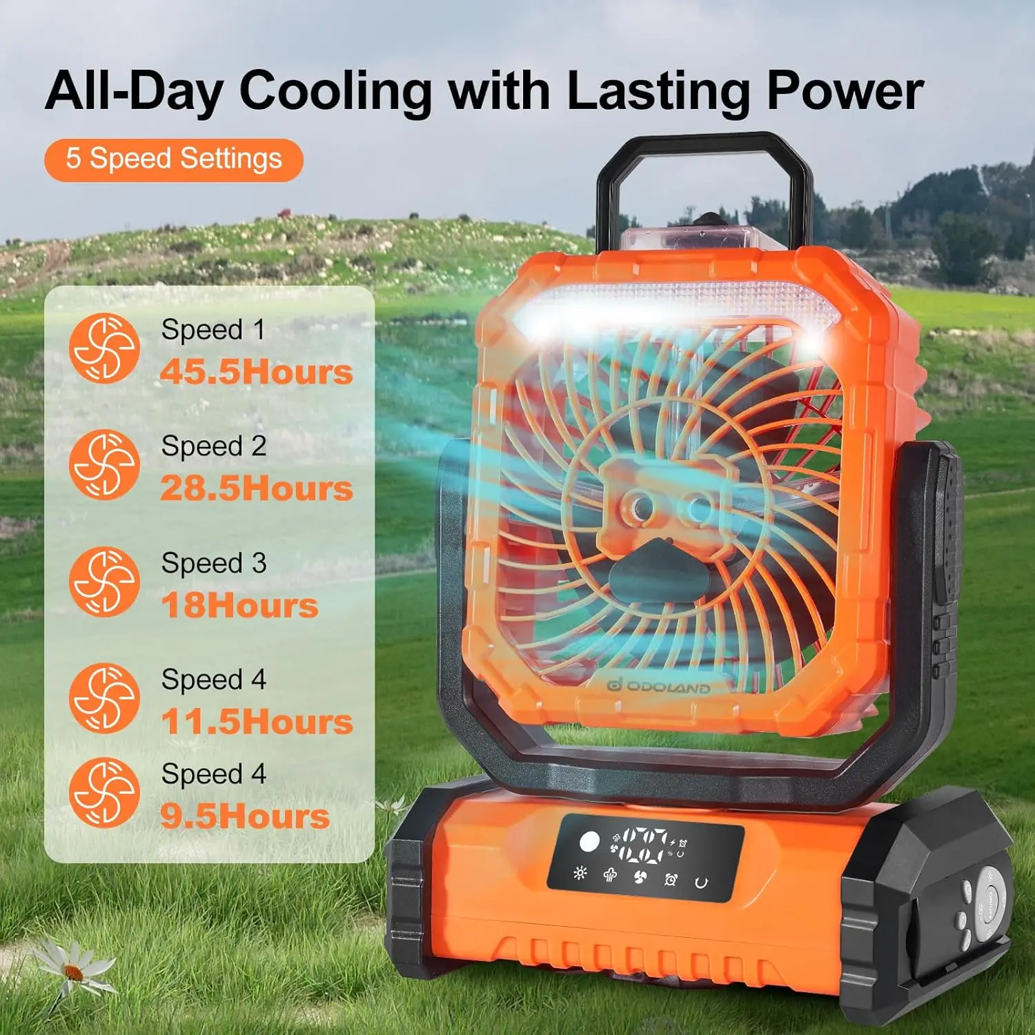 ·【Powerful and Quiet Wind】Odoland camping fan has 5 different speeds, designed to provide powerful cooling without an irritating noise. The maximum wind speed is 16 ft/s. The portable fan can work continuously for 9- 45 hrs.