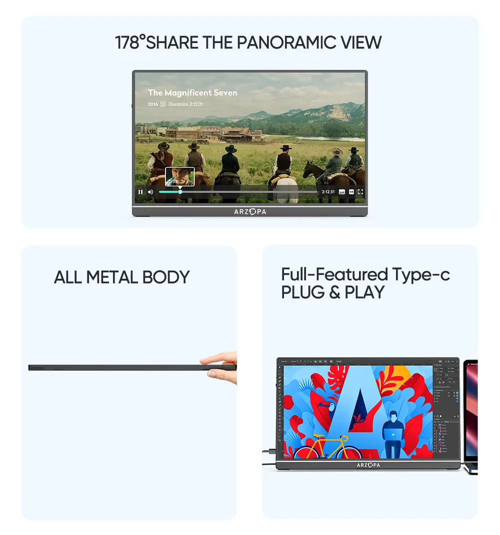 Very thin screen and easy to carry. Perfect product for that price. Took me few minutes to figure out how to split screen overall best product.