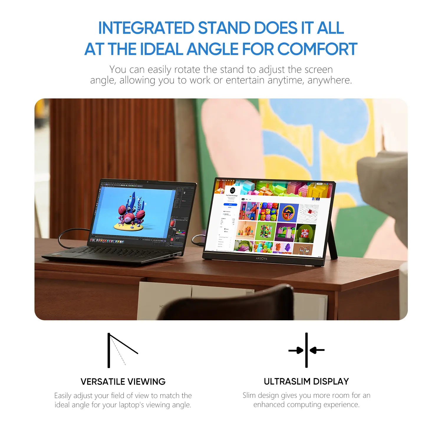 ·Enjoy ultimate flexibility with the built-in stand, allowing seamless switching between landscape and portrait modes, along with adjustable viewing angles tailored to your preference, whether for business presentations, gaming, or multimedia consumption.