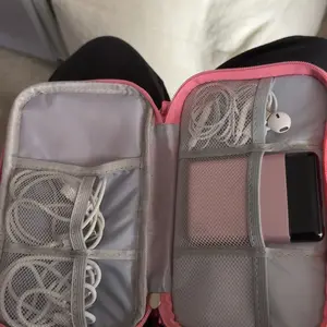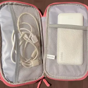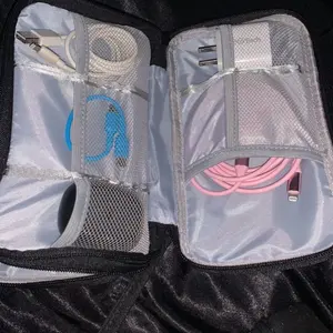 This bag is essential to all traveling needs. This amazing pouch hold all your wires, chargers and battery packs most need while traveling. Material is super durable and long lasting
