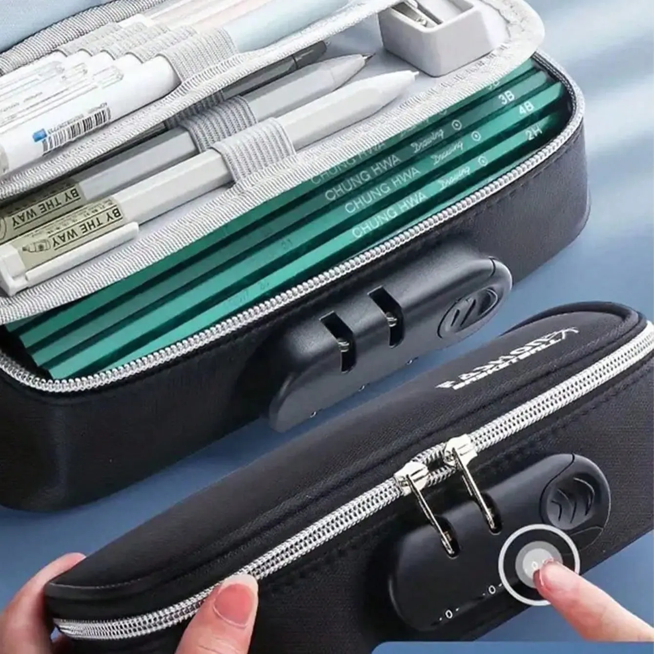 Portable Multifunctional Storage Box, Handheld Combination Lock Pencil Case, Boy Canvas Stationery Box, School Student Large Capacity