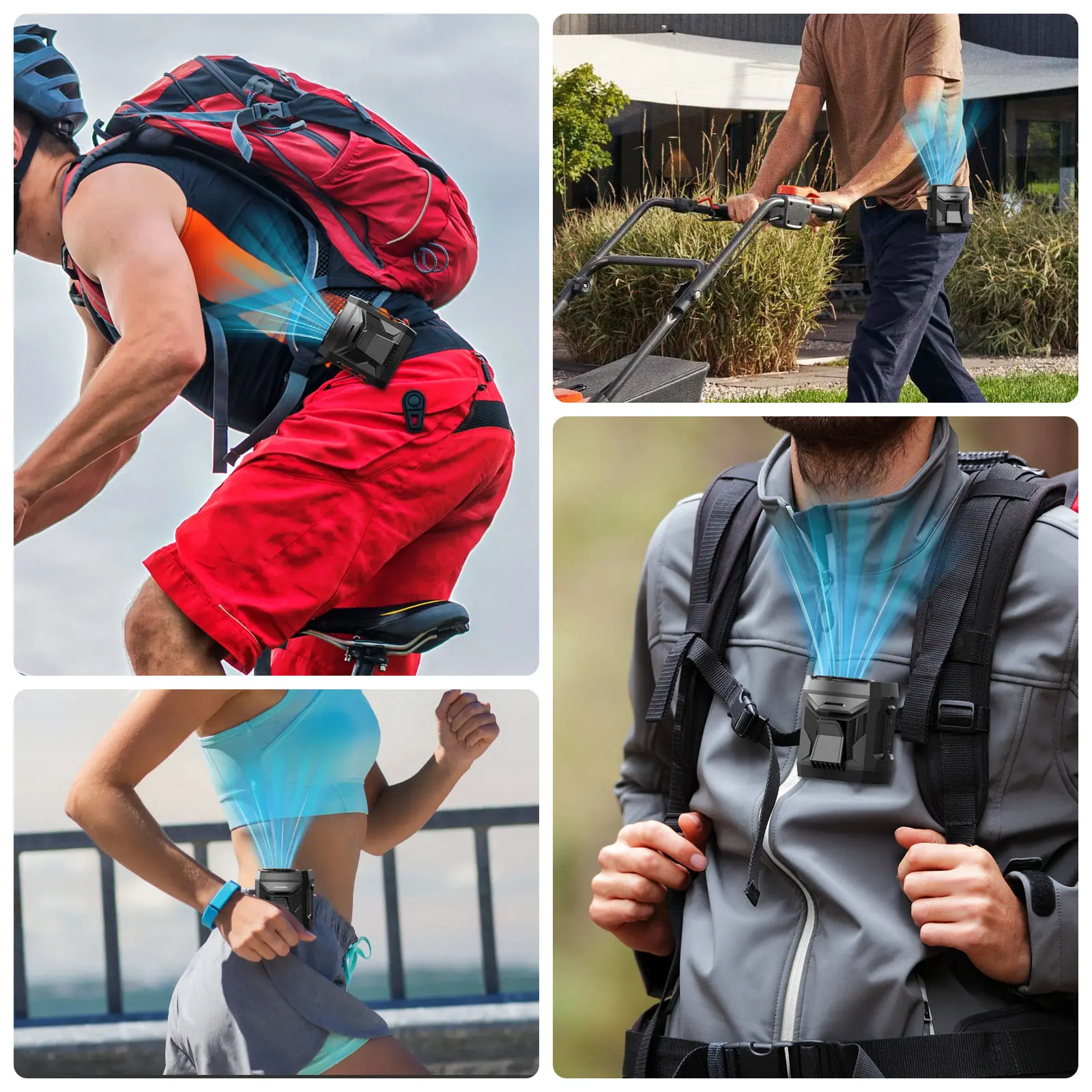The portable fan is equipped with 8000mAh high-capacity battery, which can last for 12-27 hours depending on the wind power, and it provides USB charging cable, which is convenient for charging anytime and anywhere. It can be charged by computer, mobile power, car charger and so on.