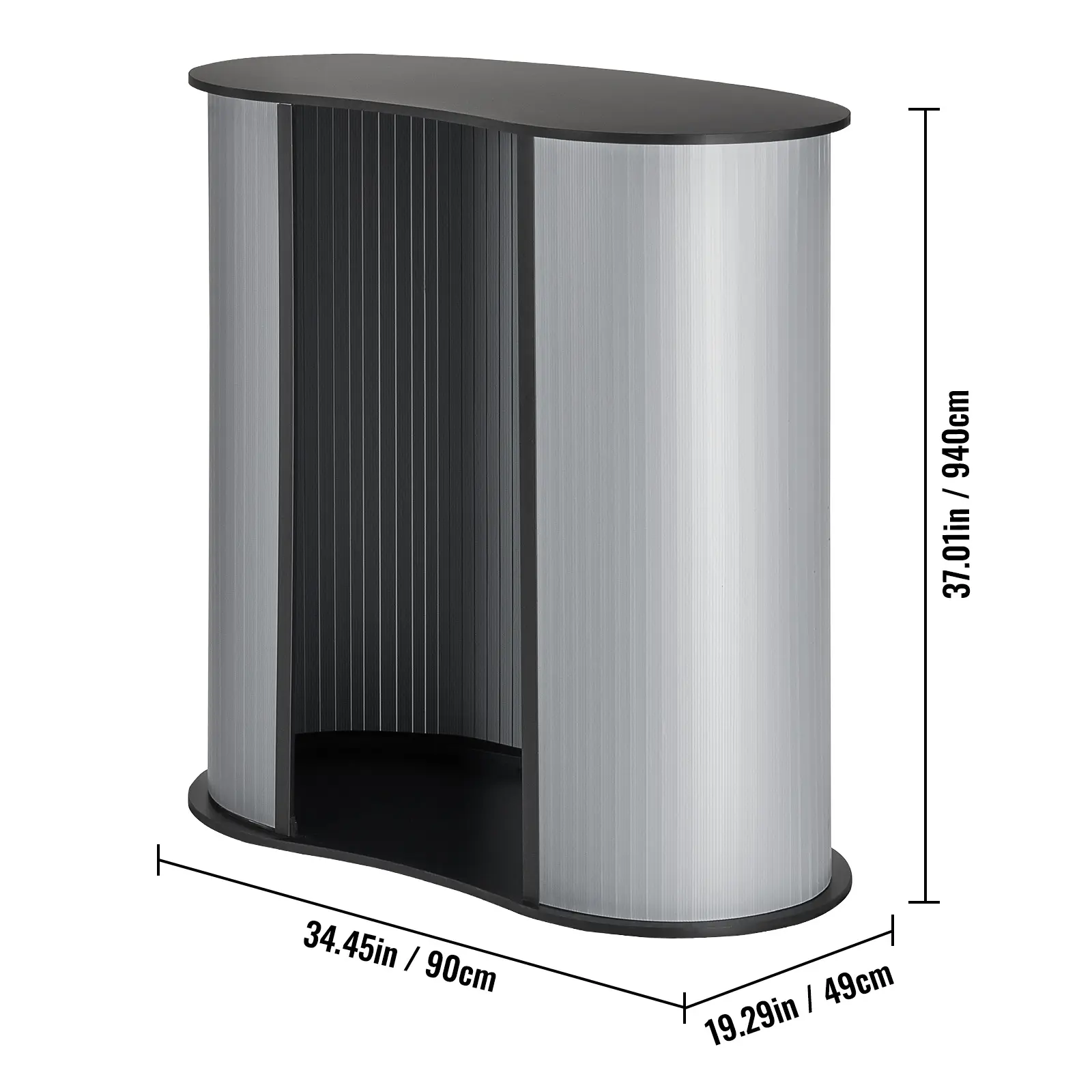 • Thicker Premium PVC & Lacquered Wood Tabletop: Our portable tradeshow podium table boasts a robust PVC skirt board paired with a high-quality lacquered wood tabletop. It's all about reliability and security, whether you're indoors or outdoors.