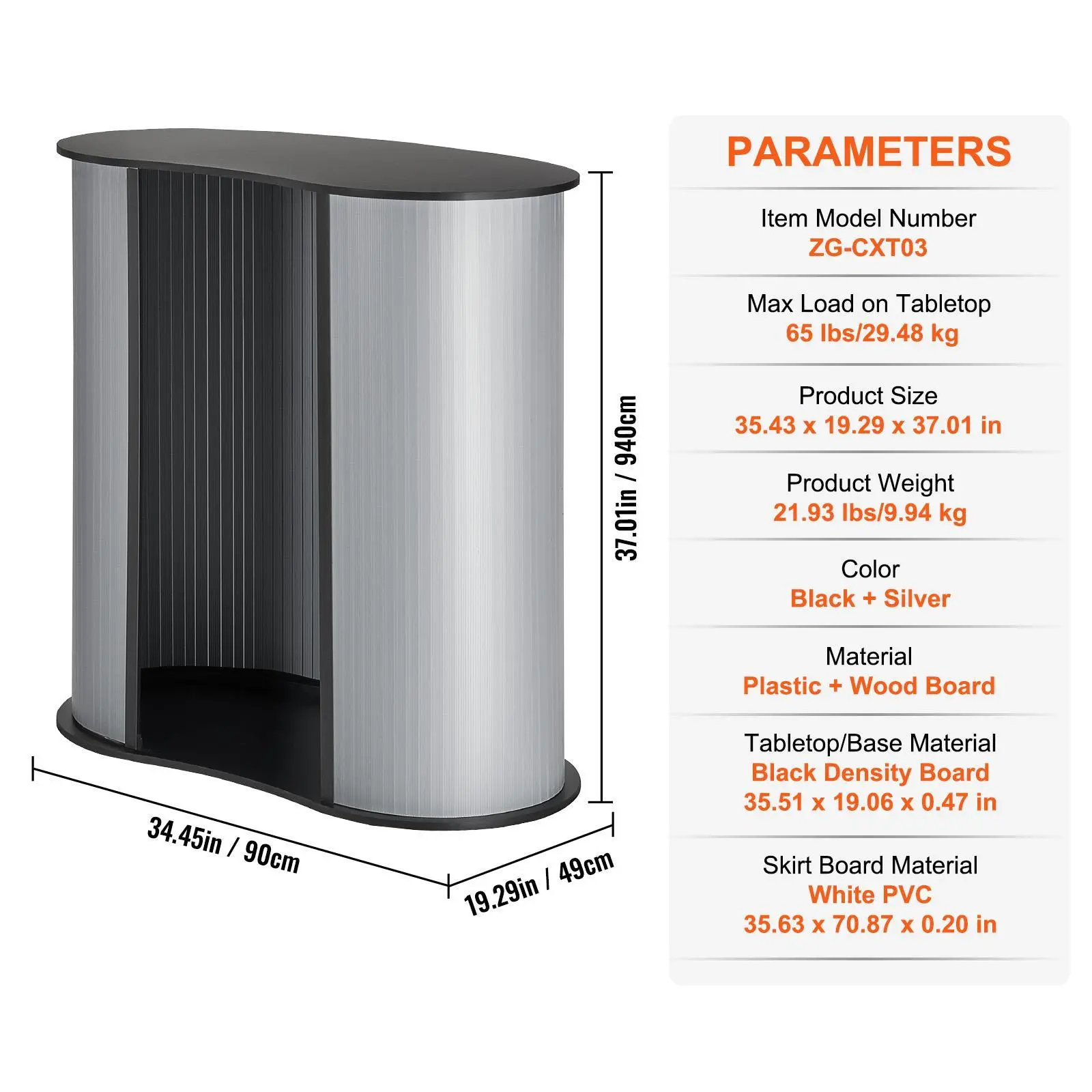 • Thicker Premium PVC & Lacquered Wood Tabletop: Our portable tradeshow podium table boasts a robust PVC skirt board paired with a high-quality lacquered wood tabletop. It's all about reliability and security, whether you're indoors or outdoors.