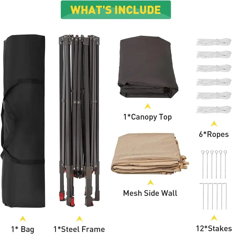 𝙋𝙤𝙧𝙩𝙖𝙗𝙡𝙚 & 𝙋𝙤𝙥-𝙪𝙥 𝘼𝙨𝙨𝙚𝙢𝙗𝙡𝙮 𝘿𝙚𝙨𝙞𝙜𝙣: Pop-up instant design is applied to this outdoor tent canopy, making it easy to set up with no hassle. Equipped with a wheeled carrying bag, the 13x13ft pop-up gazebo is easy to carry. Take it wherever you go, offering reliable shade for all your outdoor adventures