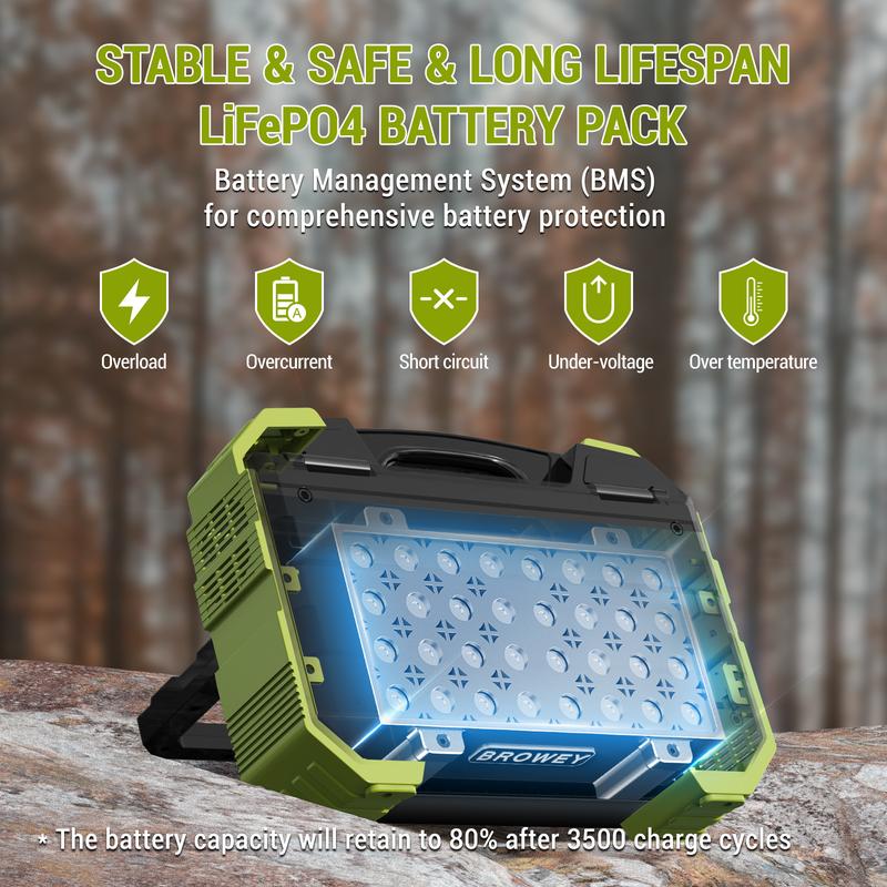 Enjoy up to 10 years of everyday use with our high-safety lithium iron phosphate batteries, which can withstand over 3500 cycles. Even after 3500+ cycles, the LFP battery of portable power station remains around 80% of its original capacity. Advanced BMS protection system that monitors voltage, current, and temperature to minimize problems caused by charging or power supply.