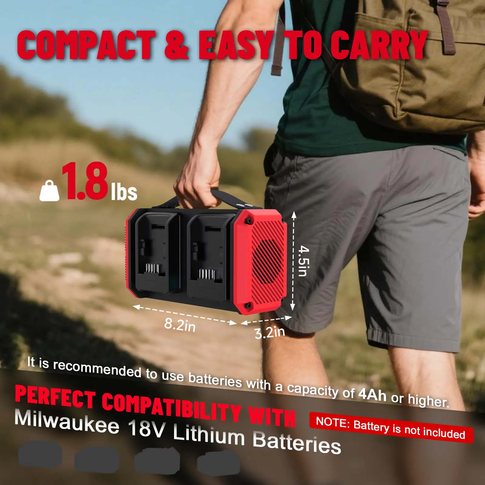 ·Compatible with Milwaukee 18V Batteries (No Battery) Works with Milwaukee 18V batteries (e.g., 48-11-1850, 48-11-1865, 48-11-1880). Provides portable power for outdoor activities, job sites, emergencies, and travel.