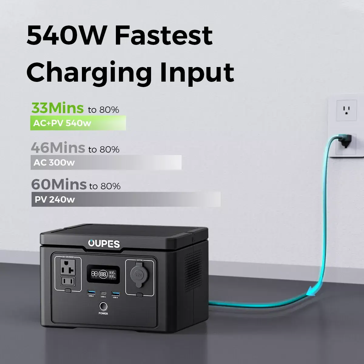 OUPES Exodus 600W, 256Wh Portable Power Station(1200w Surge), LiFePO4 Solar Generator Battery, 8.16lbs, 0-100% in 1 hour, for RV, Outdoors, Camping, Home Backup