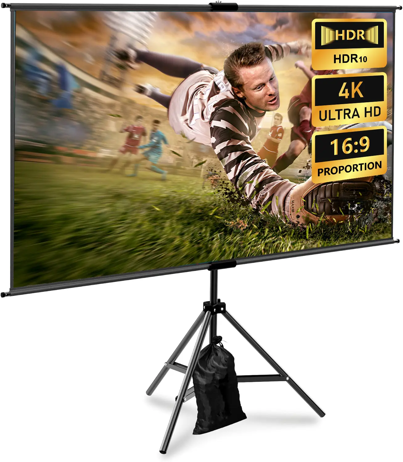 Portable projection screen with stand for outdoor use: 100-inch 4K movie screen suitable for home backyards and indoors, 16:9 HD night view.