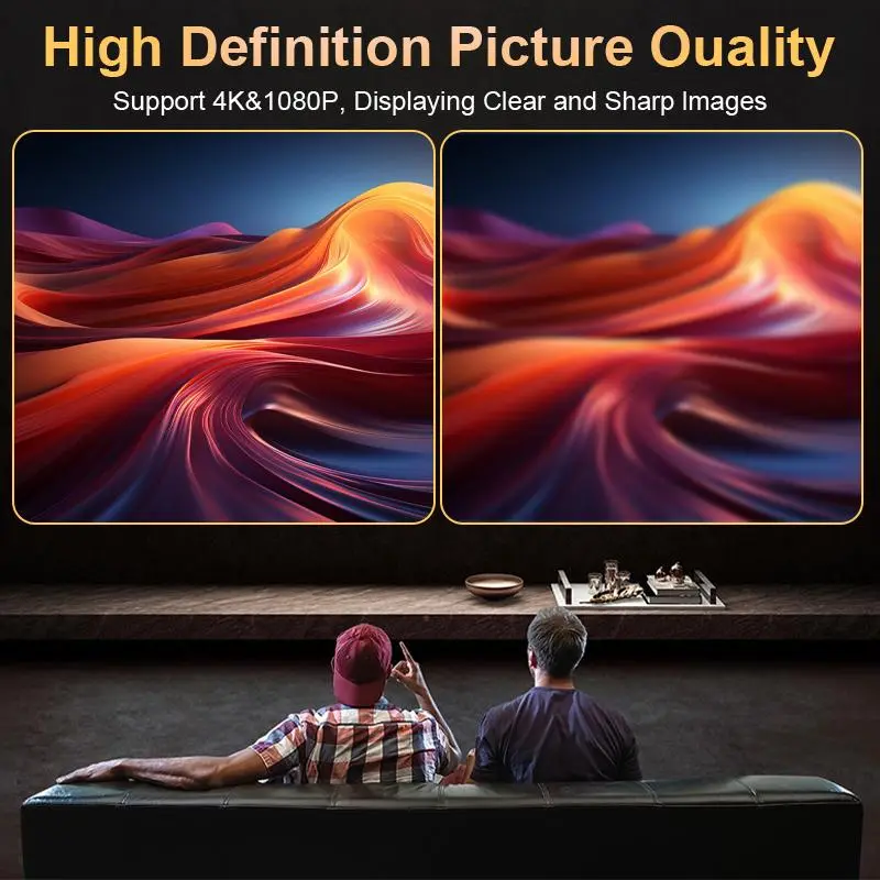 With latest 1080p Full HD resolution supported, portable projector brings you a clear and sharp detailed images. Adopted the latest color reproduction technology, every details on the screen is accurately restored to ensure a real and color-vibrant viewing effect