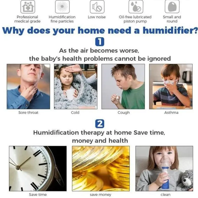 Hereâs a polished, more natural version of the text that retains all core information while enhancing readability and flow, ideal for product marketing: Experience all-around comfort that suits users of every age group. Boasting 25dB ultra-low noise operation technology, it ensures undisturbed nighttime sleep for the whole household. Paired with a gentle mist mode, itâs specially optimized for children, the elderly, and individuals with limited hand mobilityâletting every family member indulge in an immersive, hassle-free respiratory care experience.