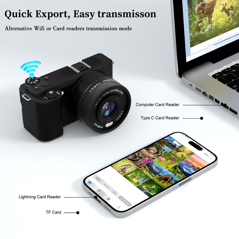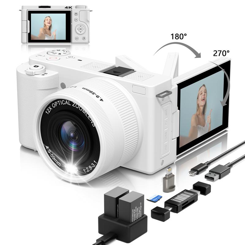 5. Portable Retro Camera,64MP vlogging camera with WiFi,4K Digital camera flip screen travel Camera,12X Optical Zoom ,camera microphone,64GB SD Card,Summer gift Outdoorfun