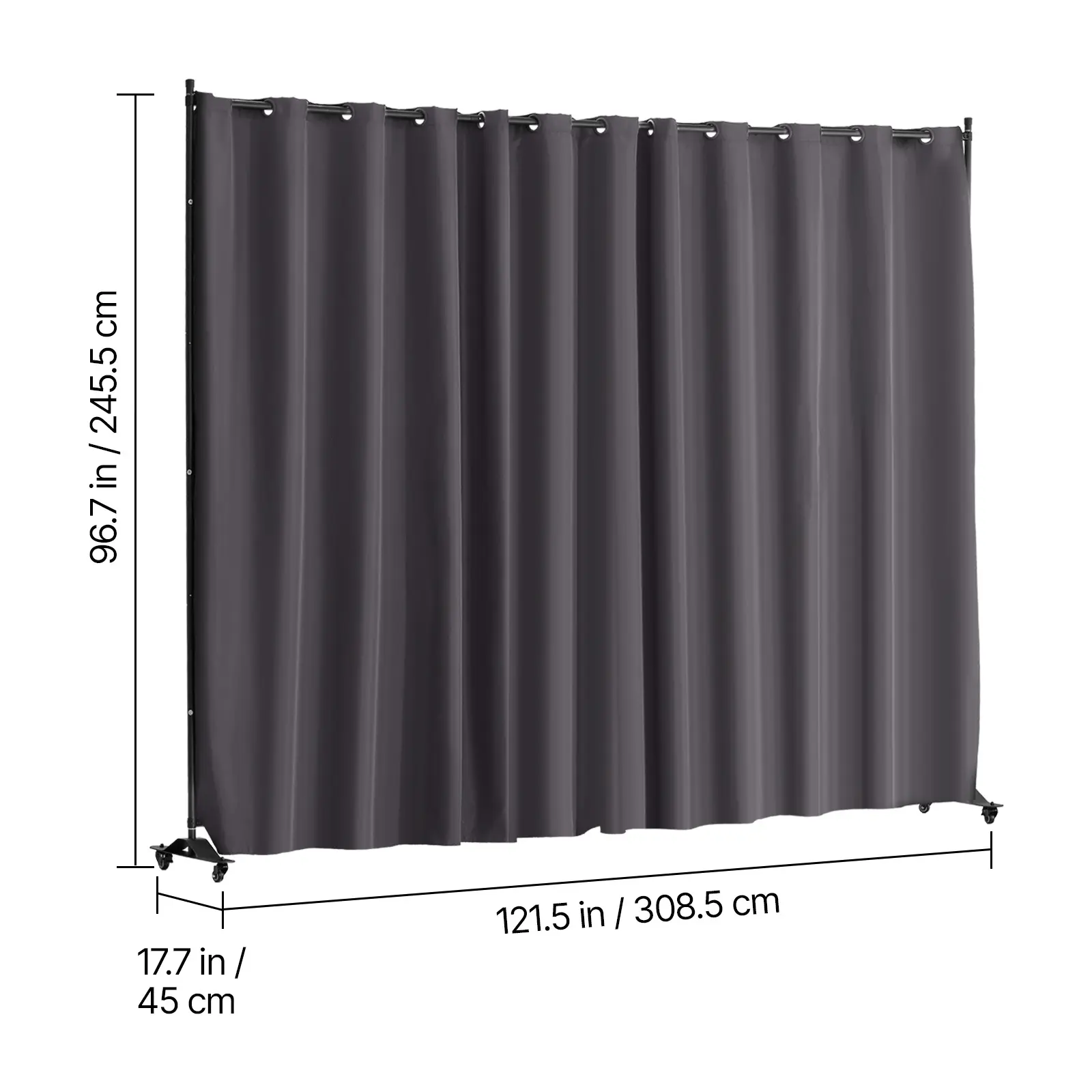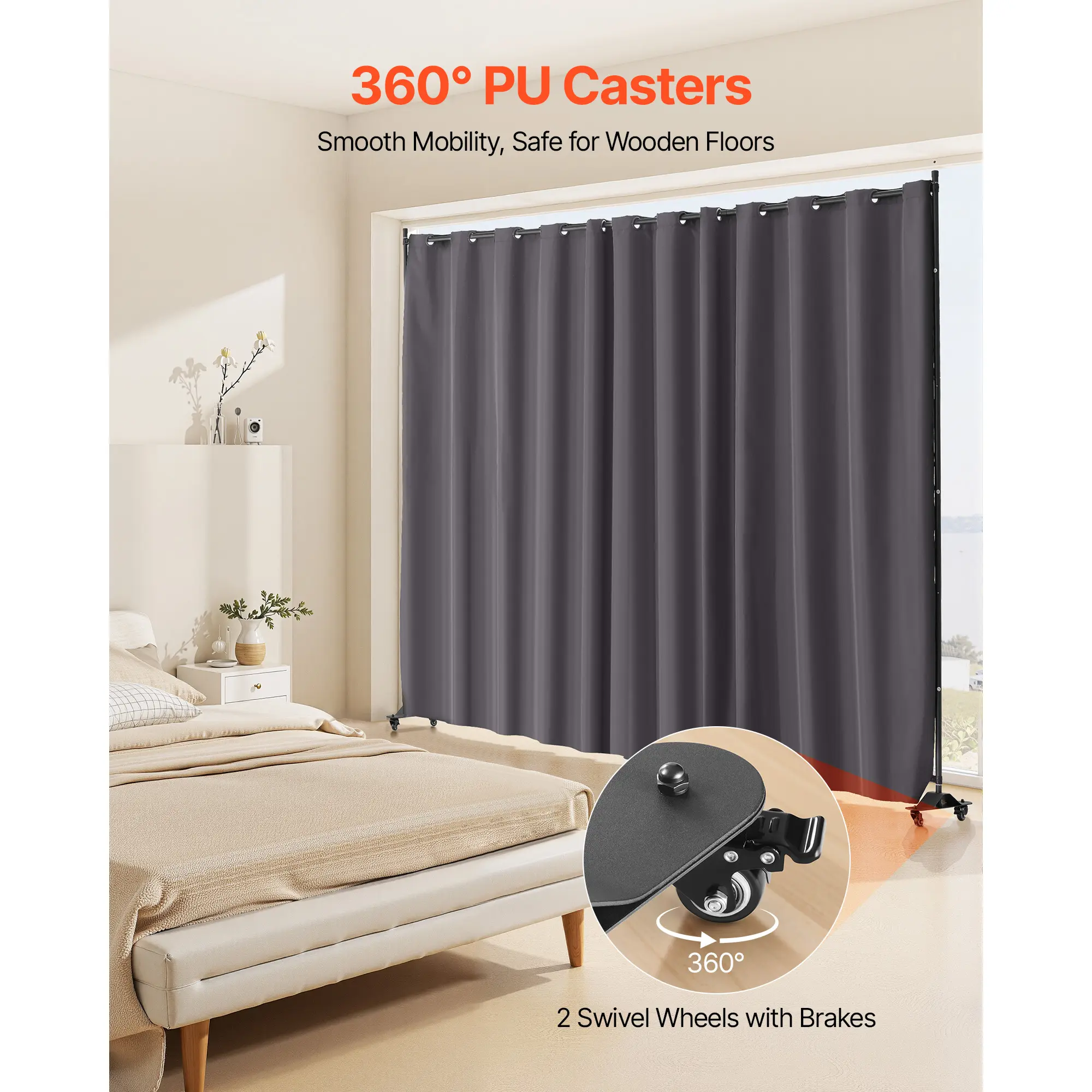 • Flexible and Mobile: Designed with four universal wheels, including two lockable ones and two movable ones, our curtain divider stand for room separation can be easily moved to any desired location. You can conveniently change the position of the divider with the flexible wheels to suit your needs.