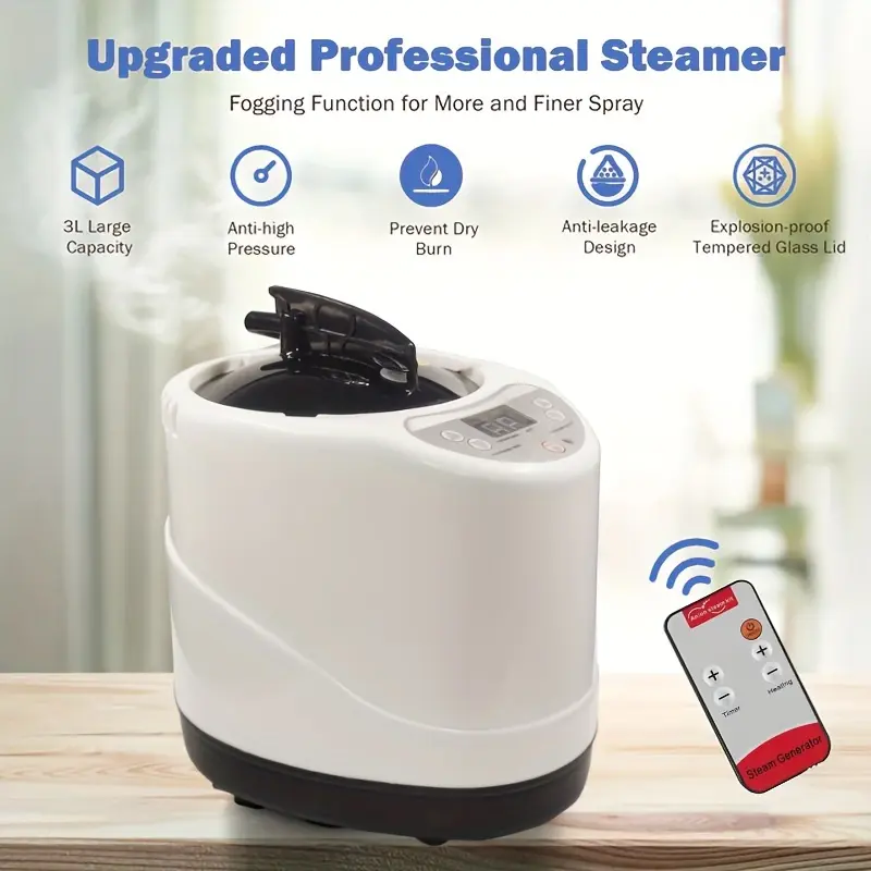 1 3-liter 1200W portable sauna machine, portable steam generator with remote control, stainless steel pot, spa machine with timer display, suitable for sauna room accessories, sauna steamer