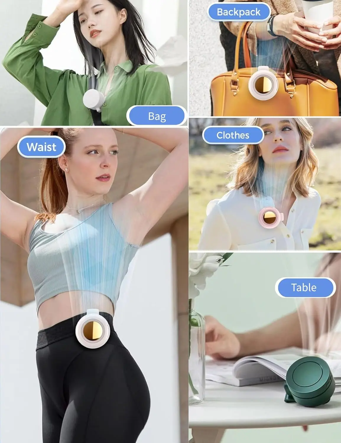 Whether you hang it on your collar or bag, or even the waist of your pants, you can feel more cool.