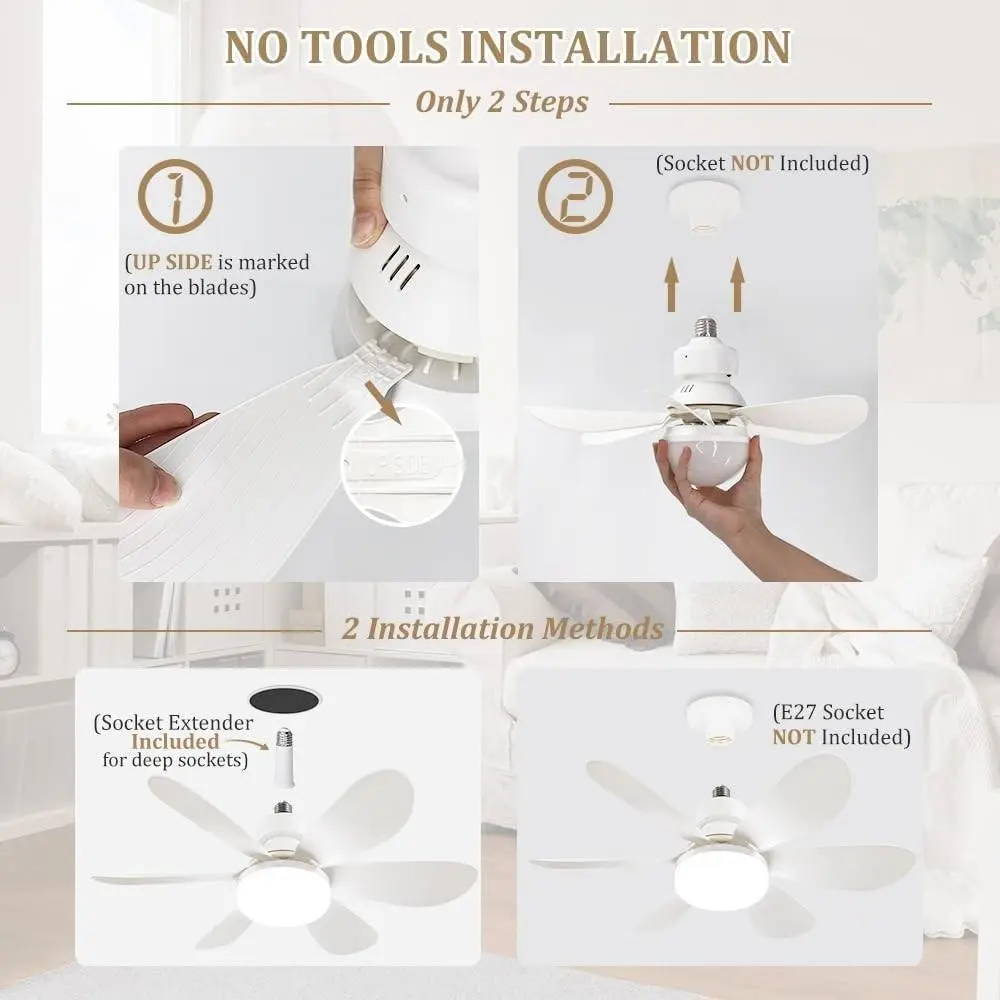 Socket Fan - Remote Controlled Socket Ceiling Fan & Light