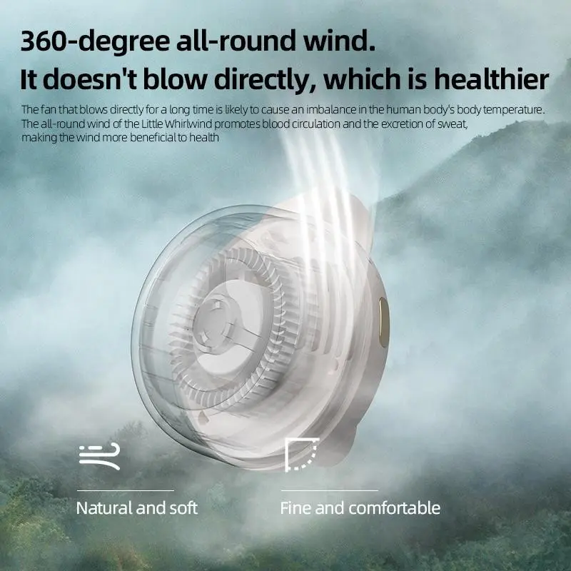 5. Portable small fan button type,Small lazy hand-held leafless rechargeable electric fan with hanging neck,Summer fan, suitable for gifts.