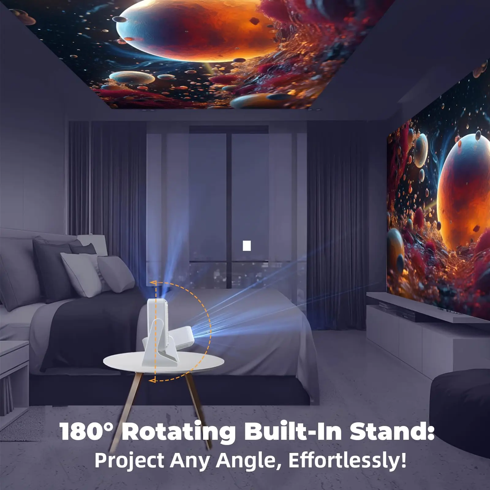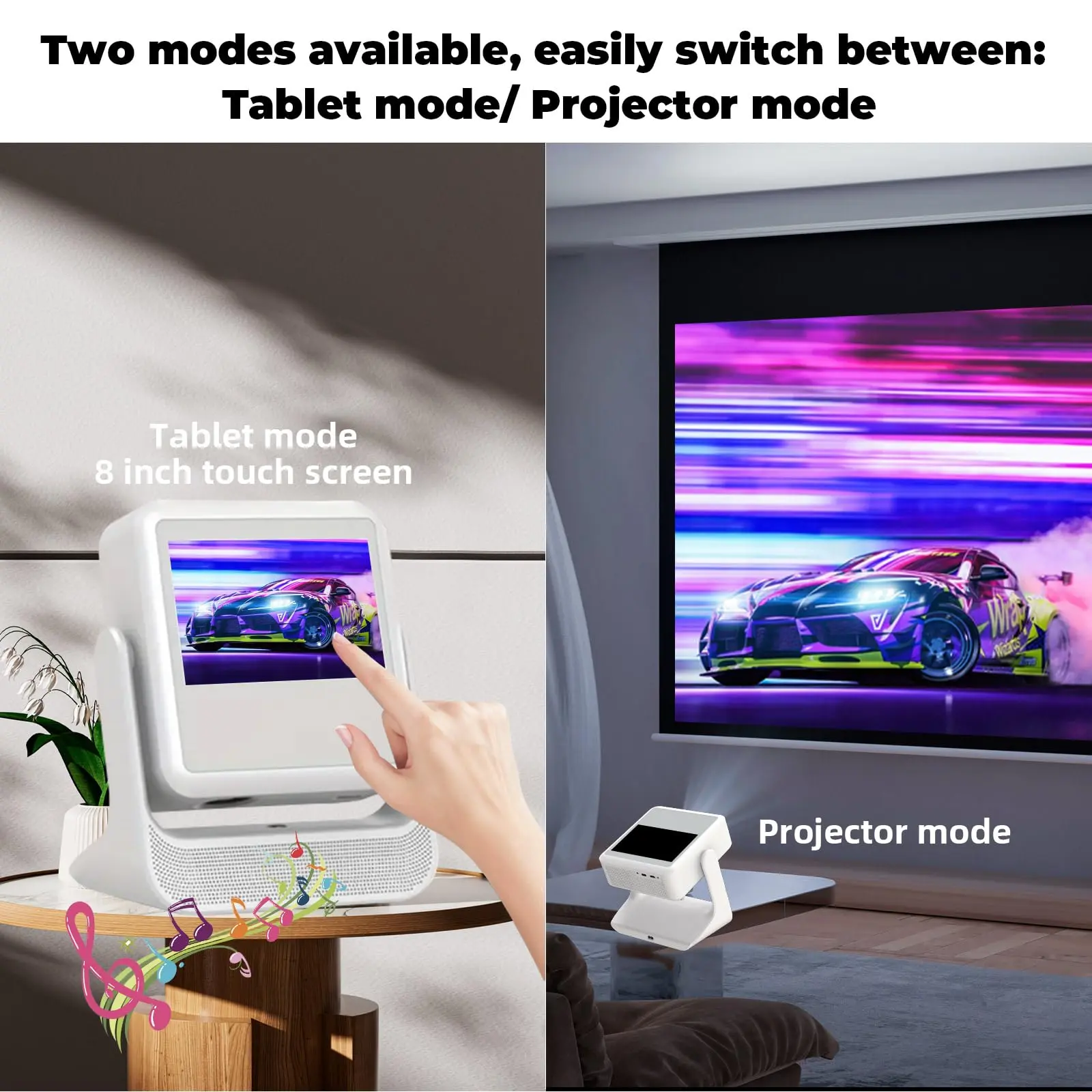 ·【Unique Touchscreen Design】Two modes available, easily switch between: Tablet + Projector. XBJ portable projector with a built-in touchscreen! Easily toggle between the interactive smart panel (for quick settings/navigation) and projecting a massive 30–300" screen on walls, ceilings, or tents. Perfect for family movie nights, kids’ learning games, backyard movie, business presentations.