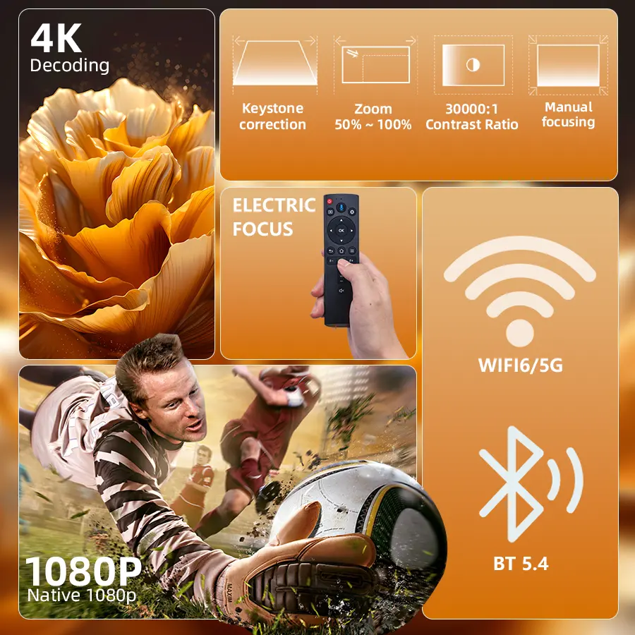 ·【Perfect for Every Occasion】XBJ smart outdoor projector for bedroom. Includes remote, HDMI cable, and power cord for plug-and-play setup. Ideal for home theaters, camping trips, wedding slideshows, or college dorms. A premium gift for birthdays, holidays, or anyone who loves interactive, big-screen entertainment—from tech-savvy students to busy professionals.