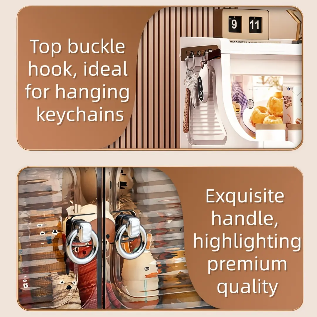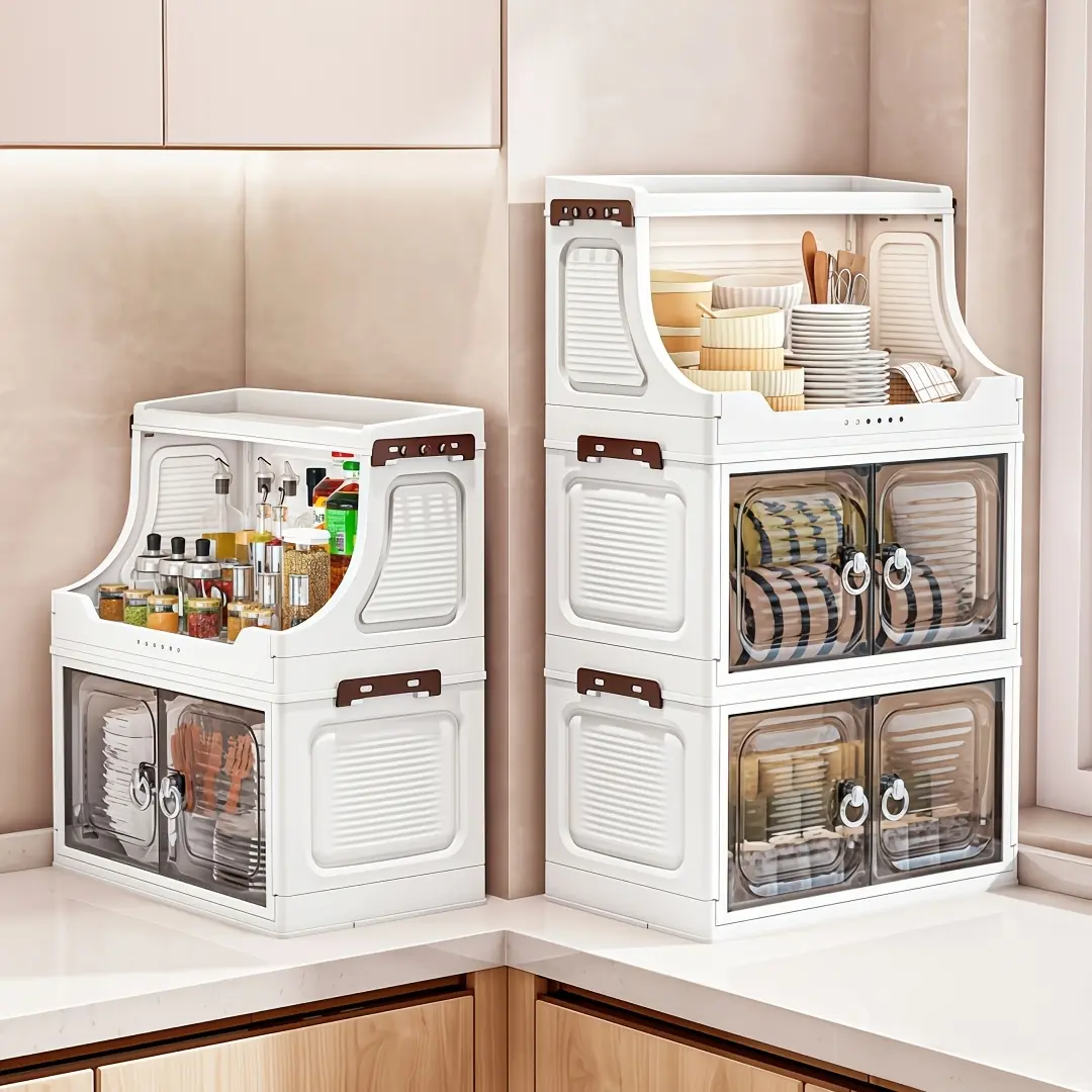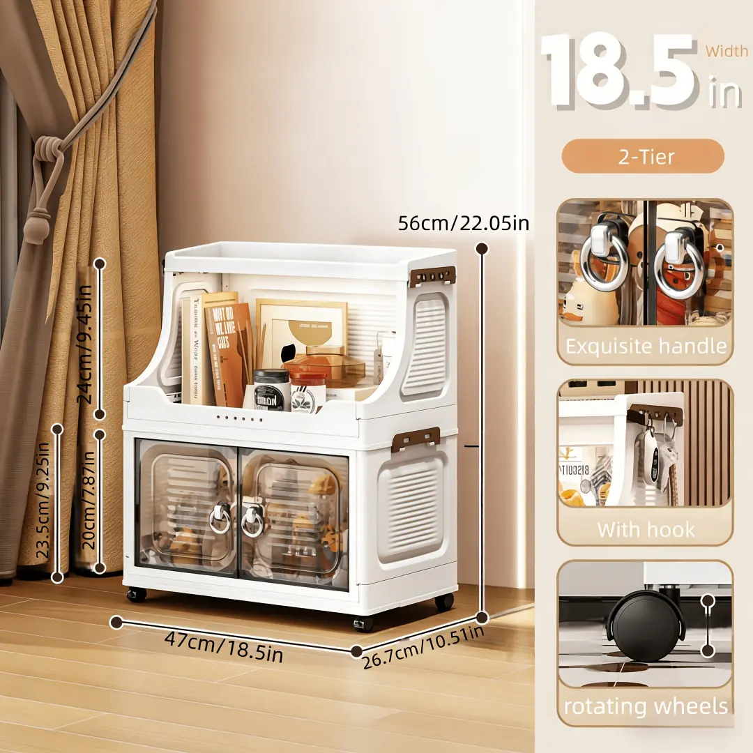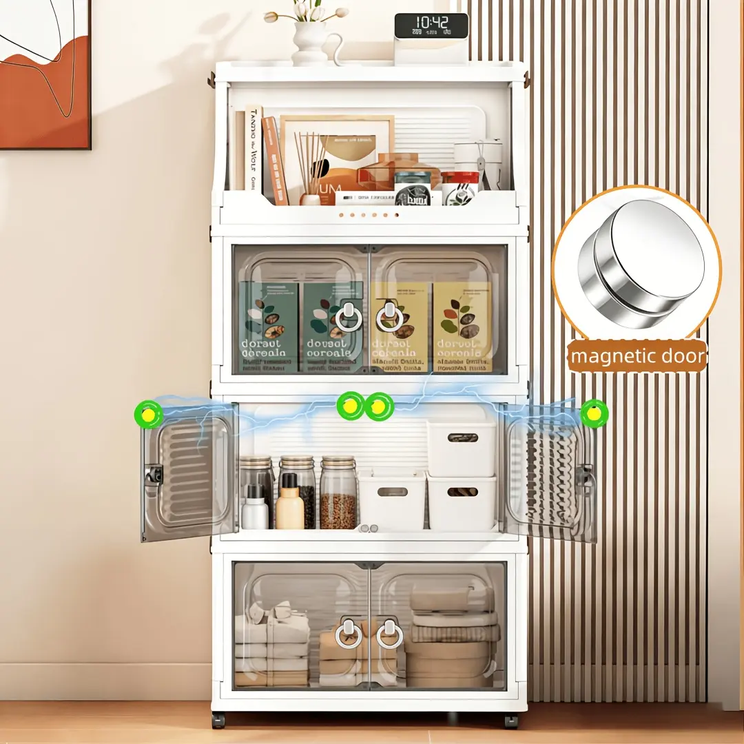 Portable and installation-free, space-saving, easy-to-assemble, stackable storage bins with lids; large-capacity folding storage cabinets with double doors; 2/3/4/5-tier storage cabinets with casters; ideal for dorms, homes, and office storage