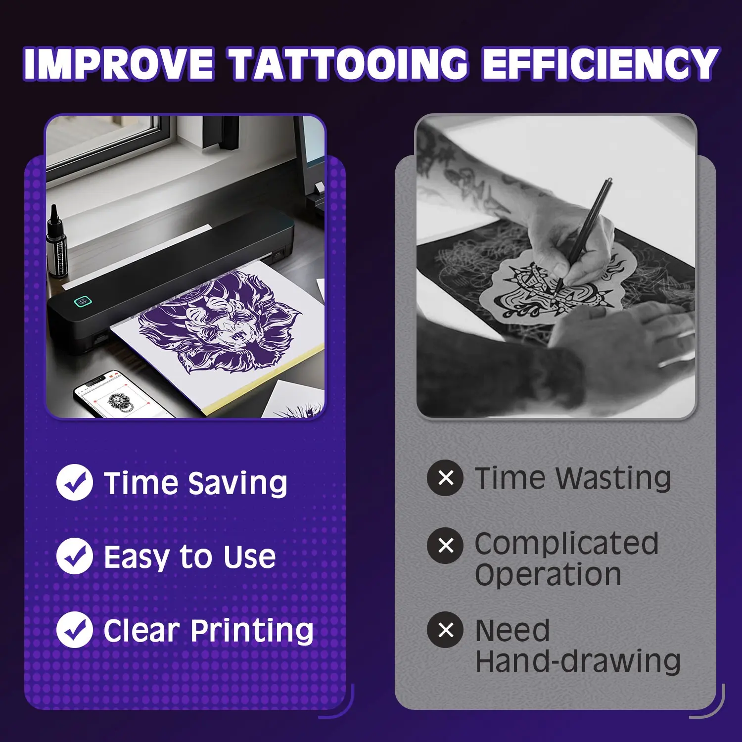 100 Sheets Tattoo Transfer Stencil Paper, A4 Size, Ultra-High Definition, Thermal Printer Compatible, Professional & Small Shops Use