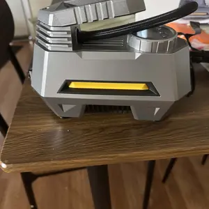 Measuring 8.26"L x 7.48"W x 4.33"H, this horizontal-style inflator is compact and easy to store. It has a maximum power of 120 Watts and a capacity of 22000 ml/min. Made from plastic and metal, it's durable and long-lasting. The LED light adds a practical feature for visibility during use. Perfect for any car accessory needs.