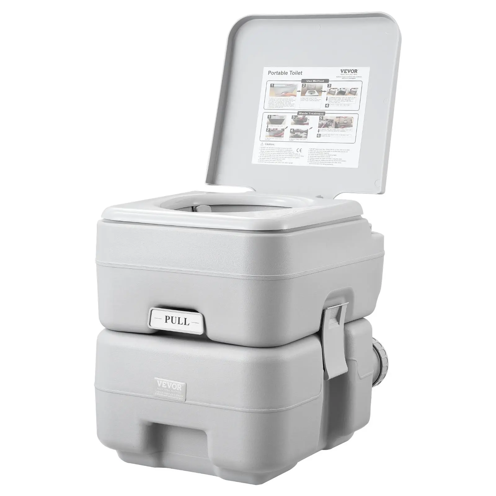 • Easy to Empty and Clean: Featuring a straight discharge outlet design, there's no need for extra complicated operations—just add water, shake, and pour out the waste directly. The toilet seat and lid can be individually removed for easy cleaning.
