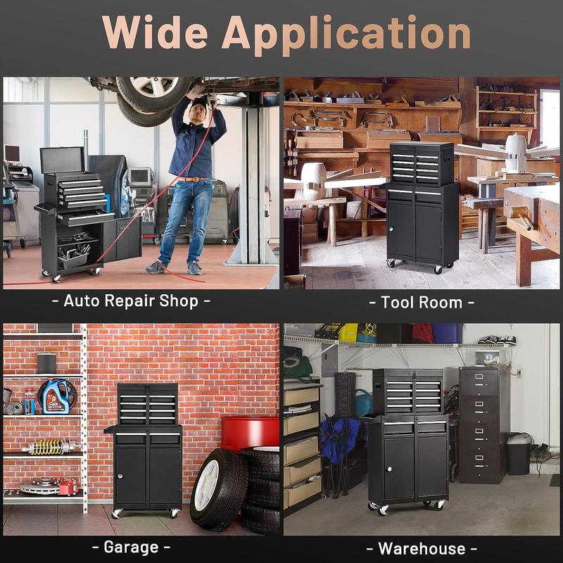 ·【2-In-1 Design with Detachable Tool Box】Overall Dimension: 23.5" x 11" x 40" (L x W x H) The tool cabinet can be separated into a 4-drawer tool box and a rolling tool cabinet, which can be used separately or together according to your needs. Besides, the top tool box can also be stored inside the bottom cabinet to save space.