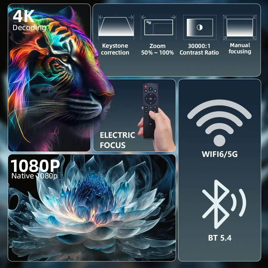 [Perfect for Every Occasion] The XBJ Smart Outdoor Bedroom Projector includes a remote control, HDMI cable, and power cord for plug-and-play operation. It's perfect for home theaters, camping trips, wedding slideshows, or college dorms. It's the perfect gift for birthdays, holidays, or anyone who loves interactive, big-screen entertainment—from tech-savvy students to busy professionals.