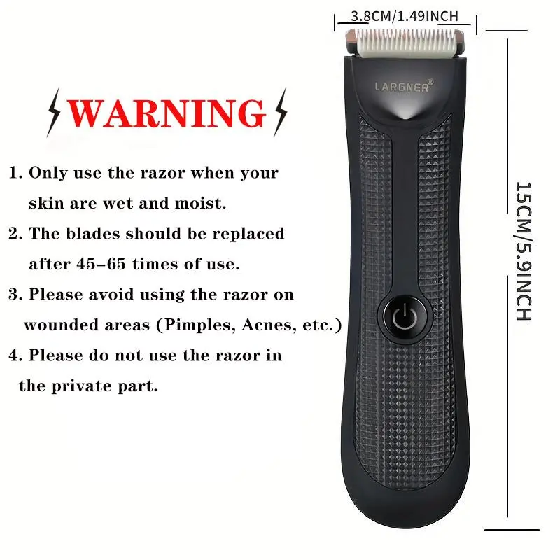 ăQuiet Operationă: Engineered for low noise, the portable electric body hair trimmer kit operates at a peaceful level, ensuring a quiet and comfortable shaving experience.